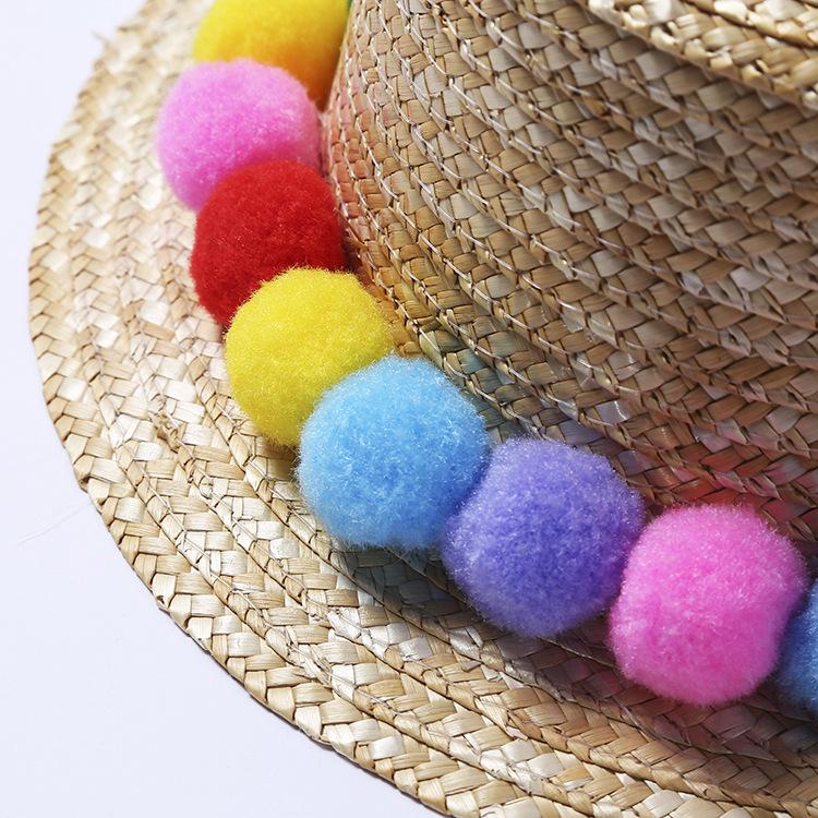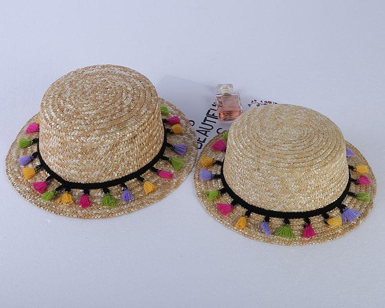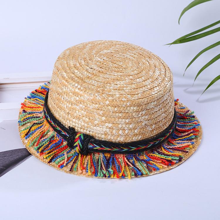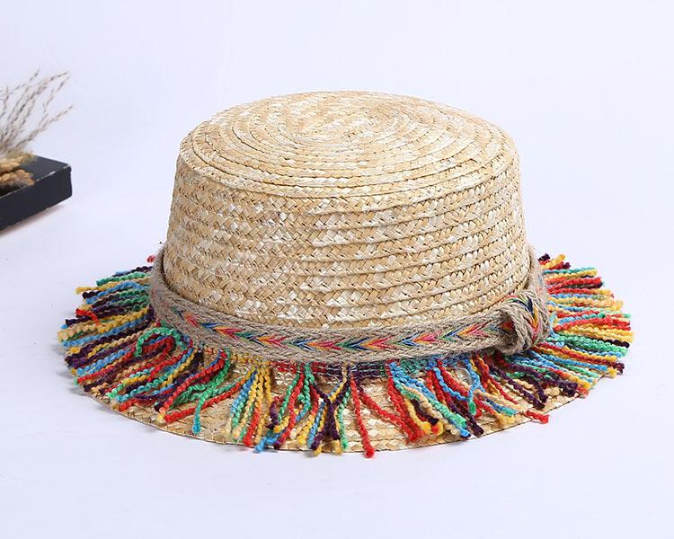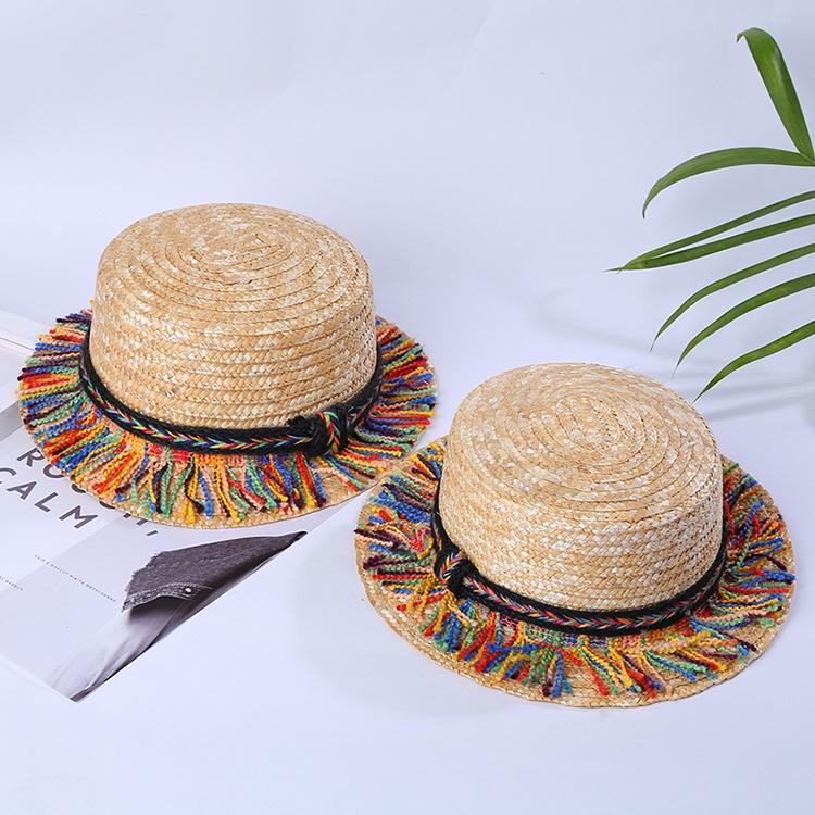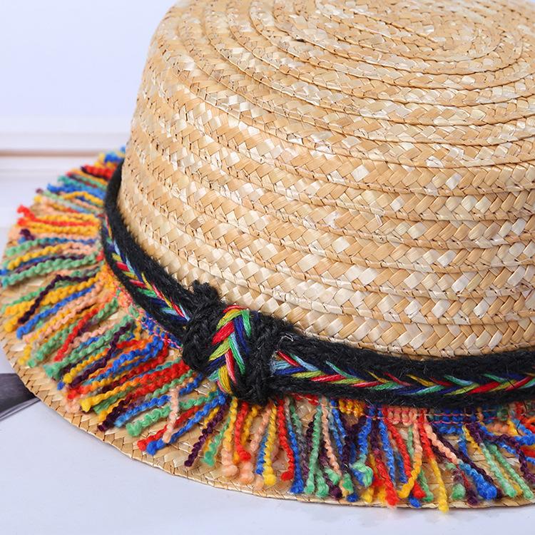 Sombrero de Borlas Colorido de Copa Plana y Ala Ancha Sombrero de Paja para Mujer Verano Playa Sombrero para el Sol Fabricante Venta al por Mayor