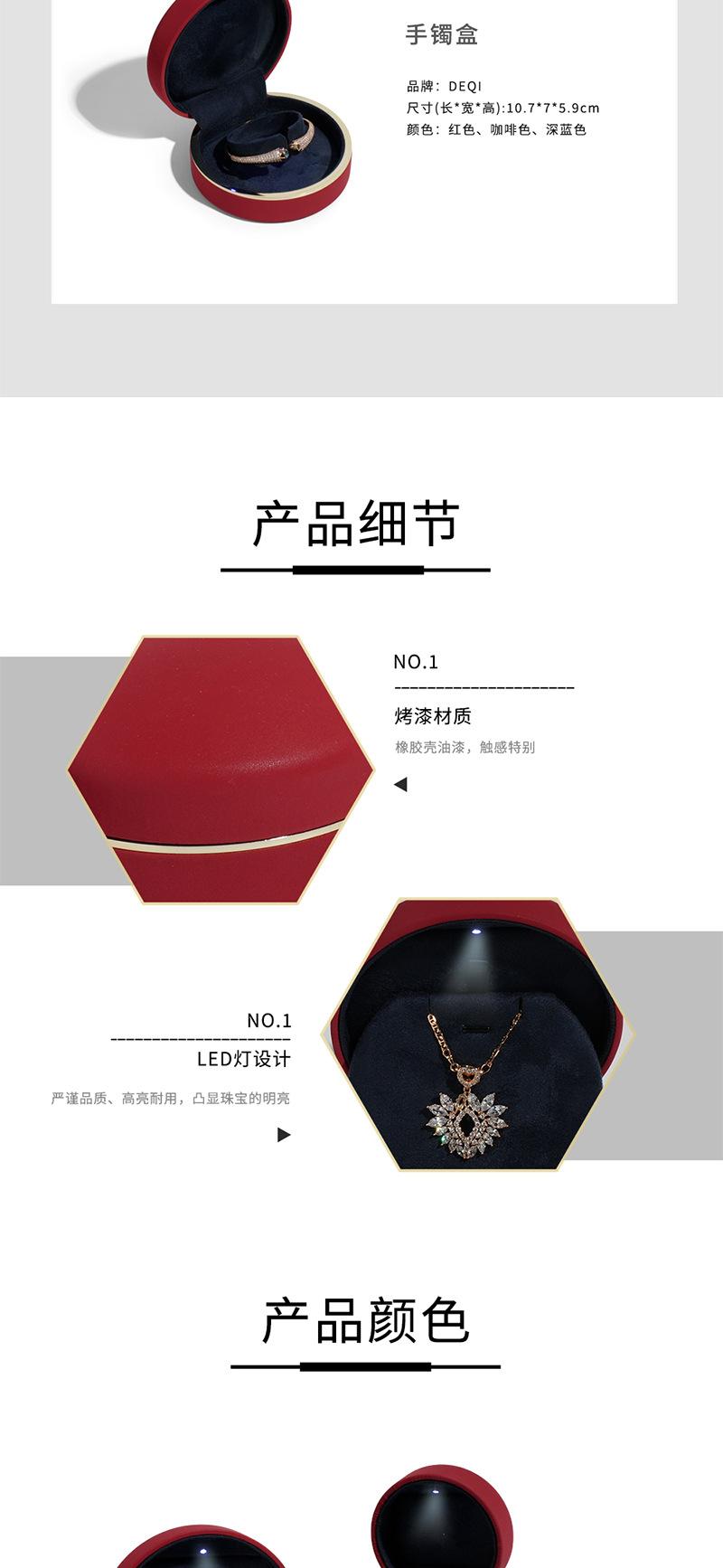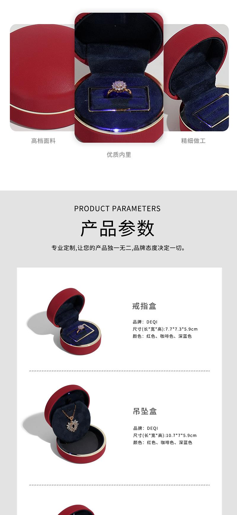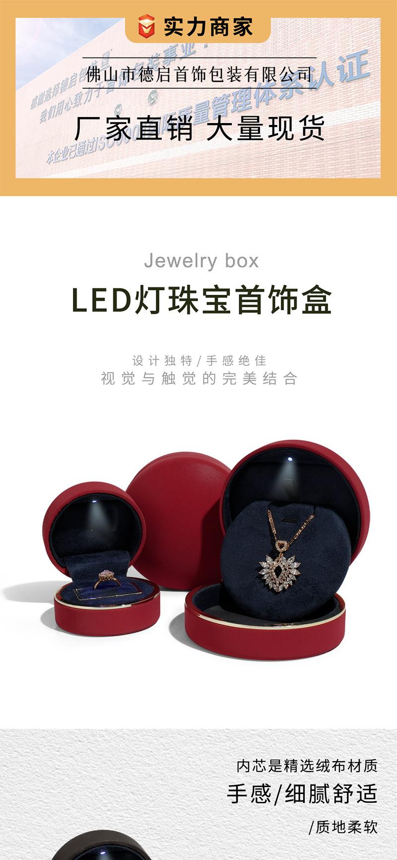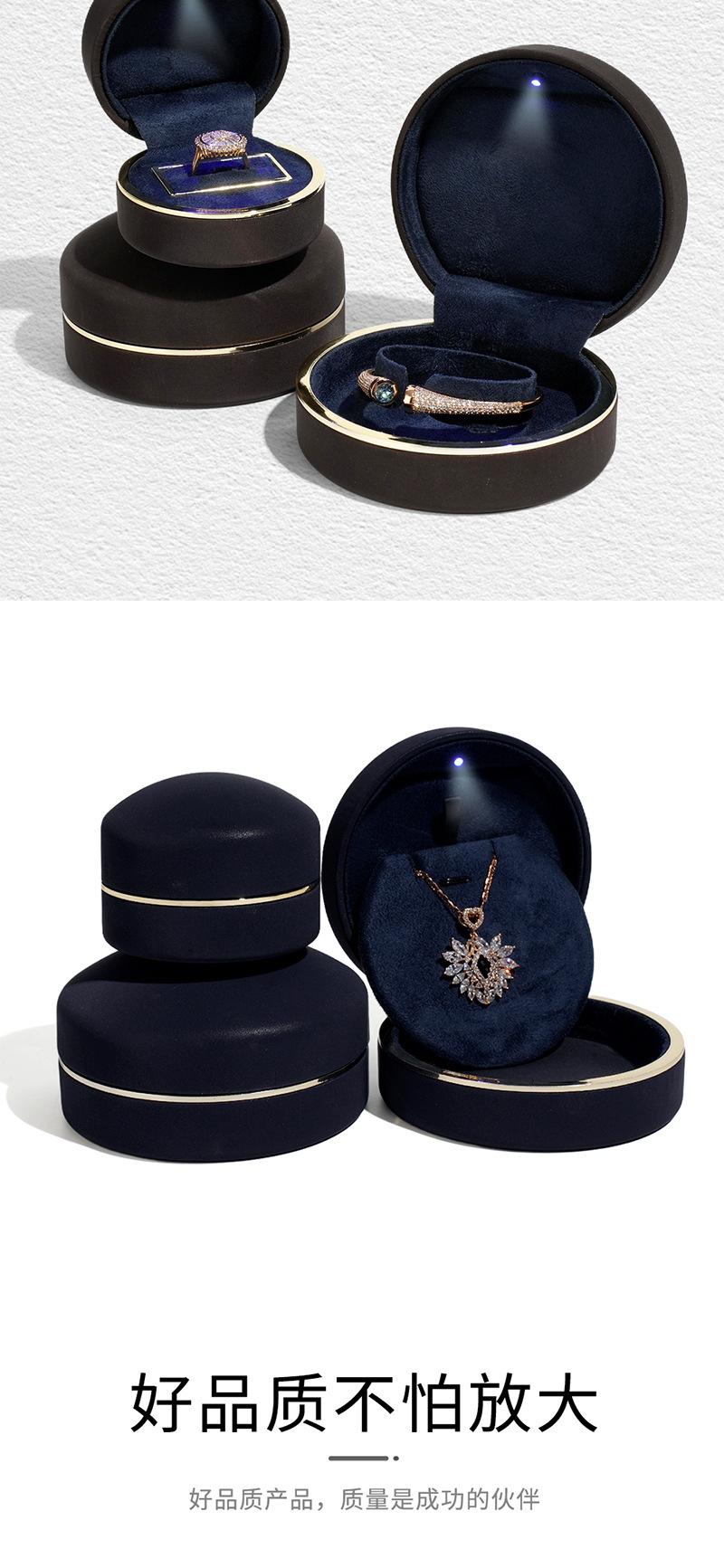 Deqi Caja de Joyería Redonda con Borde Dorado y Luz LED Personalizada Caja de Embalaje para Joyería Anillo Collar Exportación Transfronteriza