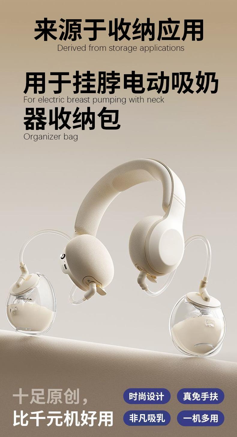 Bolsa Corazón Concha de Oso Blanco Pequeño Extractor de Leche Eléctrico Indoloro Succión Bilateral de Senos Tipo Cuello Manos Libres Succión de Senos Bolsa de Almacenamiento