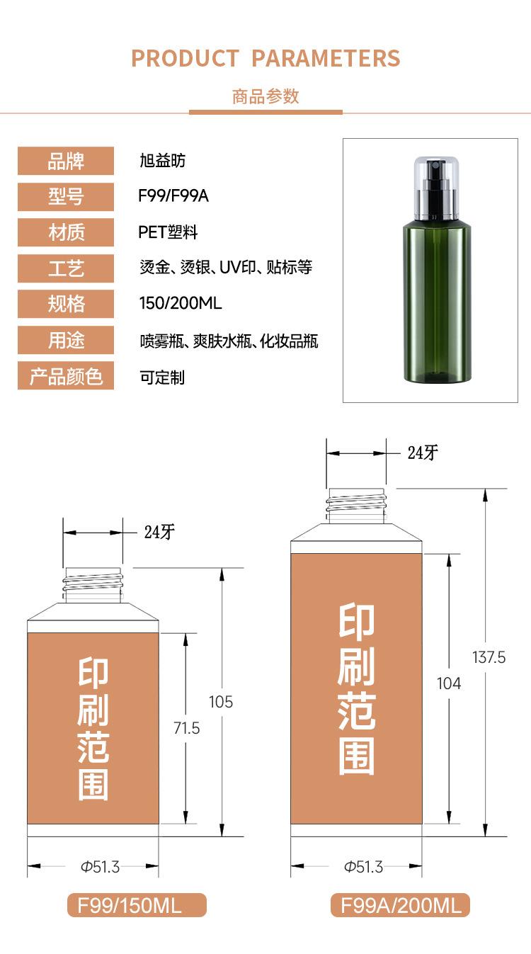 Botella de Spray de Alta Gama Personalizada Material de Embalaje Cosmético Botella de Plástico 150Ml200Ml Rocío Puro Aceite Esencial Botella de Spray de Niebla Fina