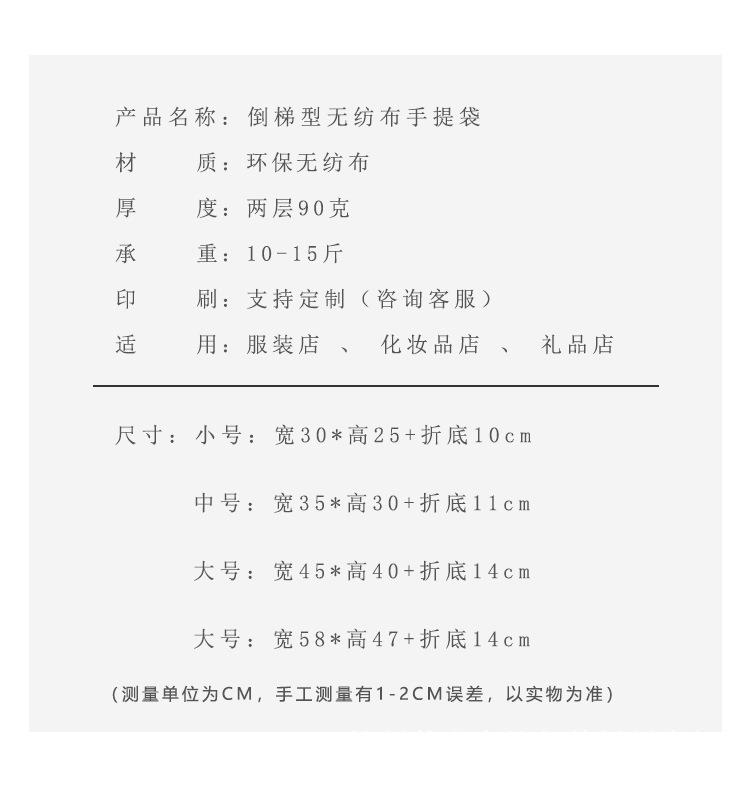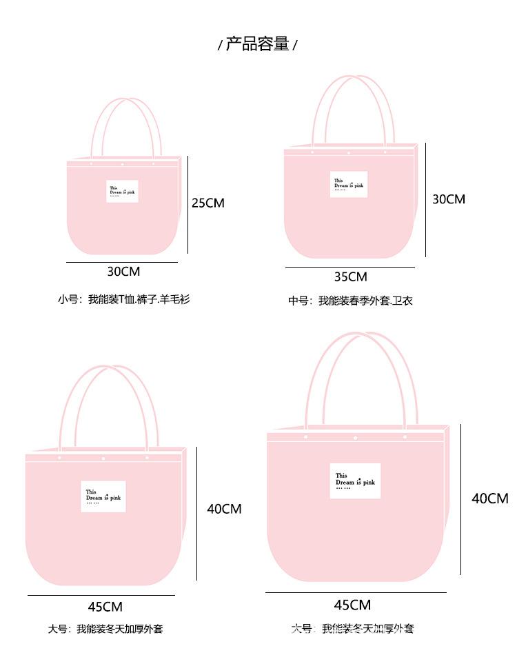 Medium width 35*30+ folded bottom 11cm, Large width 45*40+ folded bottom 14cm, Extra large 58*47+ folded botto...