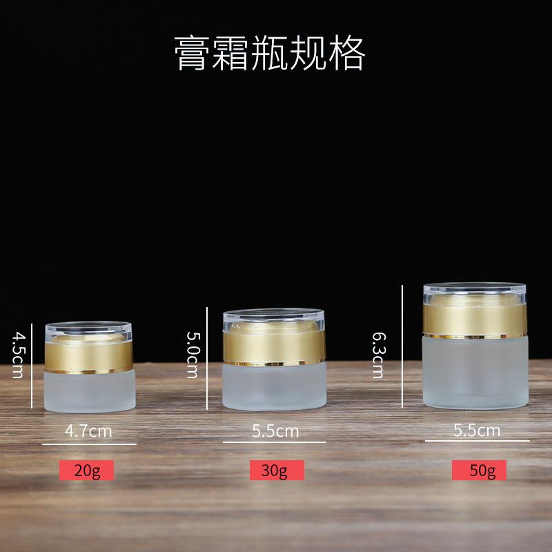 Frosted sand gold lid; 20g cream bottle; glass, Frosted sand gold lid; 30g green frost bottle; glass, Frosted ...