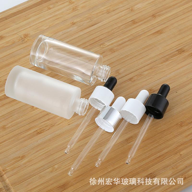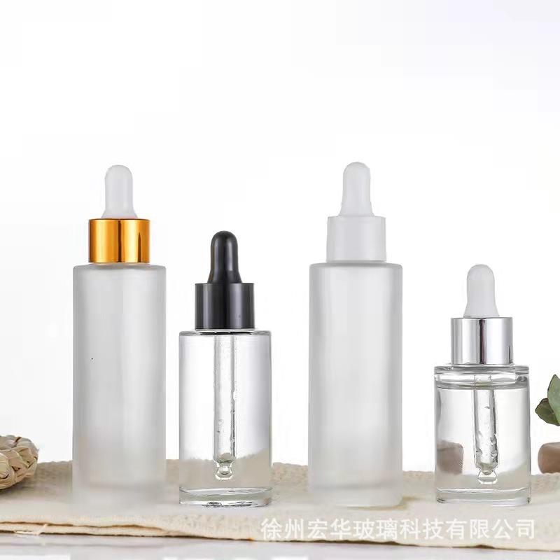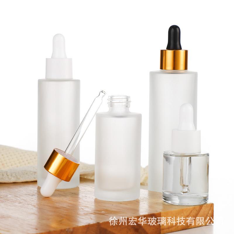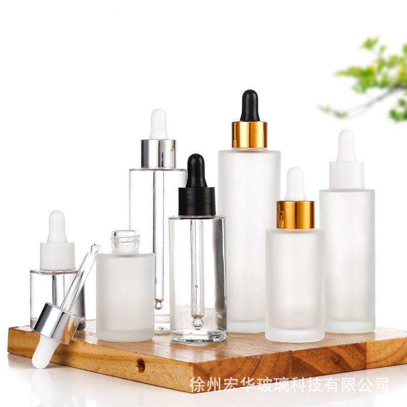 【Botella gotero de aceite esencial transparente esmerilada de hombro plano】