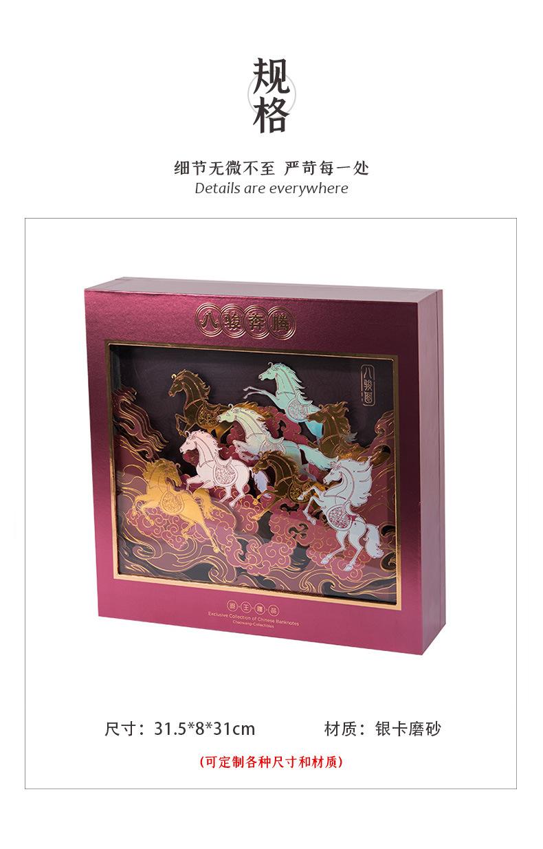 2025 Nueva Caja de Regalo Tridimensional Caballo Galopando Hecha a Medida con Ventana Cubierta Cielo y Tierra Estampado en Caliente Elegante Personalización de Caja de Regalo Acompañante