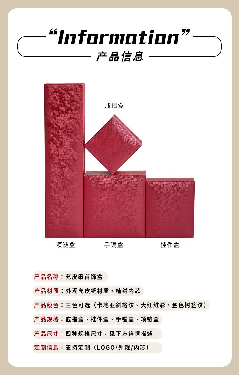 Caja de joyería de papel de cuero de ángulo recto rojo caja de joyería para anillo colgante pulsera caja de joyería pulsera collar caja de joyería al por mayor