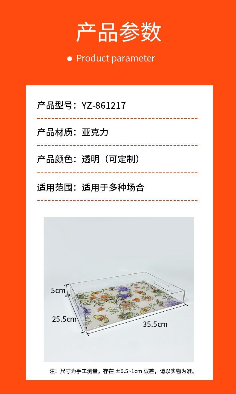 Bandeja Acrílica Transparente Hogar Hotel Artículos de Aseo Supermercado Almacenamiento Bandeja de Té Bandeja Acrílica Rectangular
