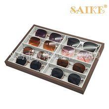 Bandeja de exhibición de gafas de sol de 8 piezas de madera de nogal negro al por mayor, bandeja de exhibición de ventas de 8 paquetes