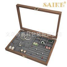 Caja de exhibición de joyería multifuncional de alta gama de madera de nogal negro al por mayor con ventana grande + interior de terciopelo de microfibra