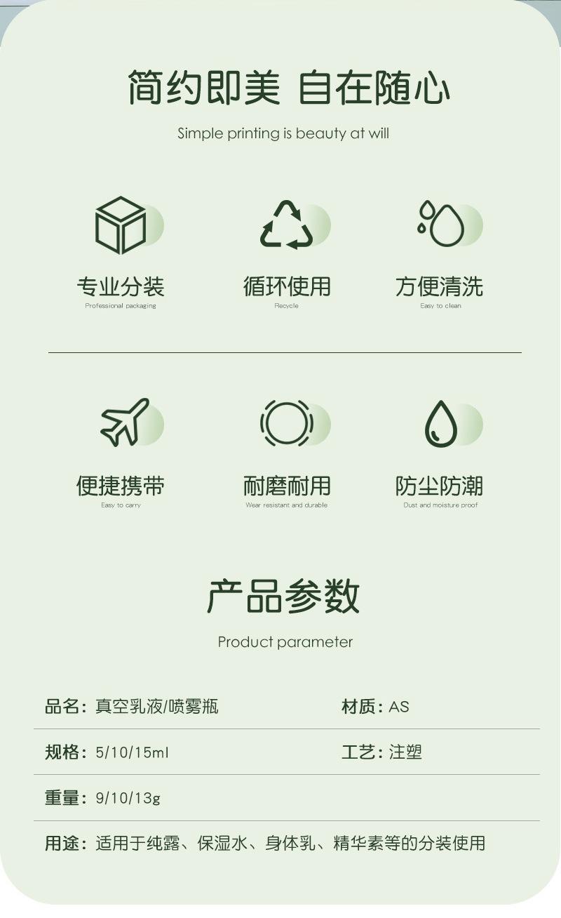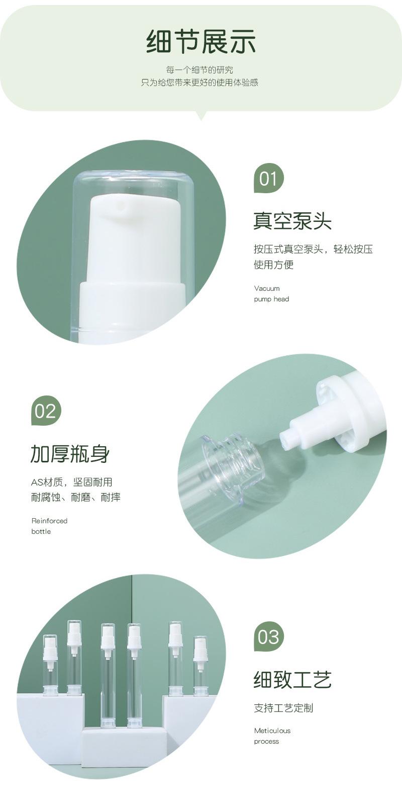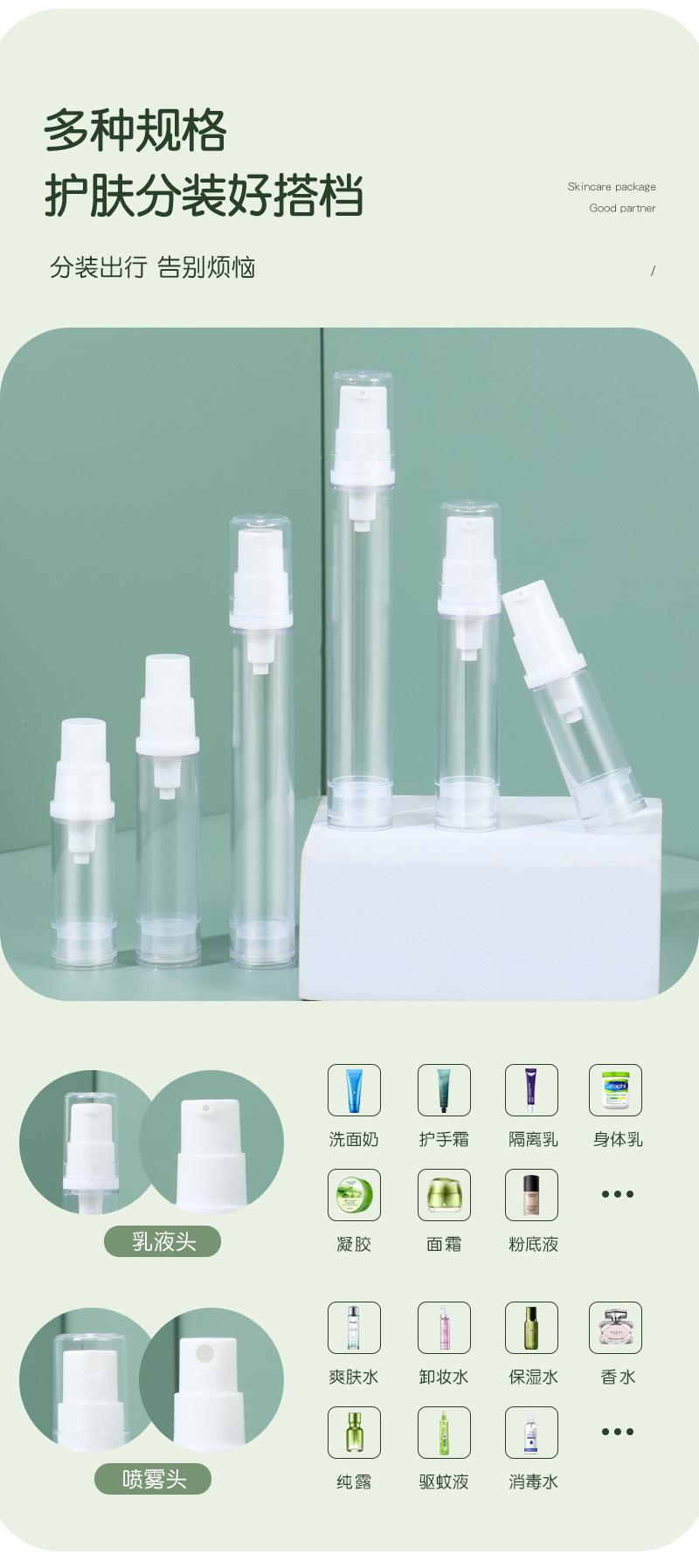 Mini botella de plástico transparente cuerpo AS botella de vacío 5/10/15ml botella de loción al vacío/botella de spray al vacío