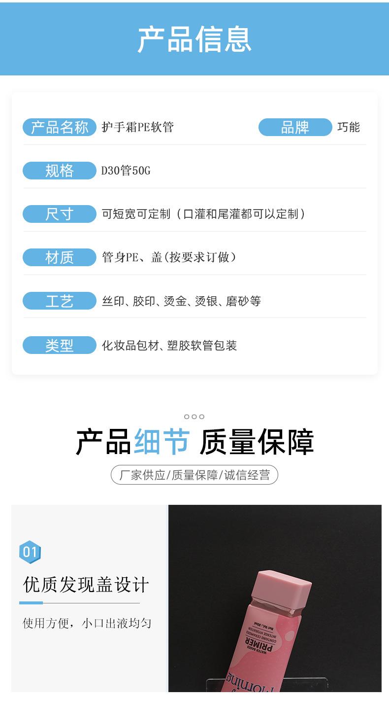 Tubo Cosmético Crema de Manos 50ml Empaque Limpiador Facial Crema Aislante Protector Solar Plástico PE Empaque Personalizado Sellado