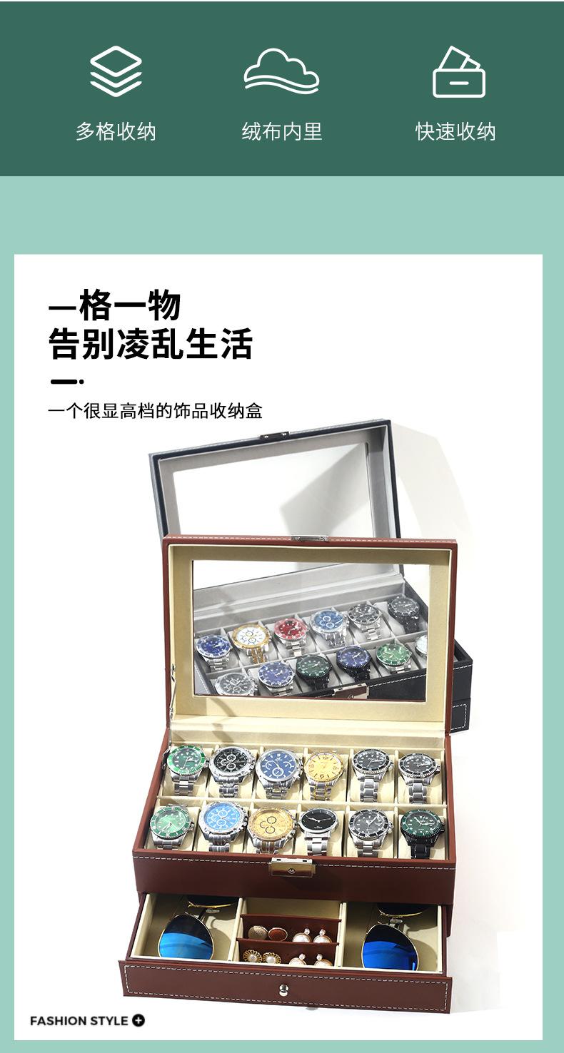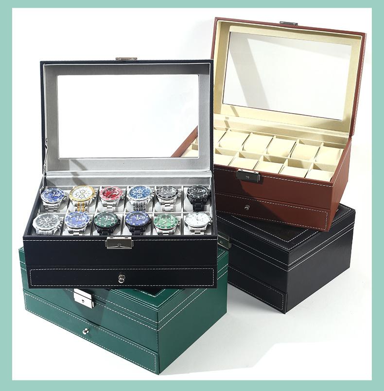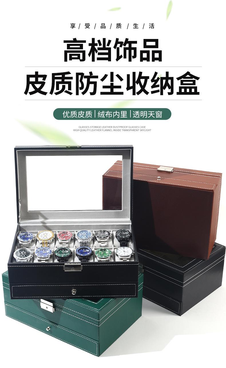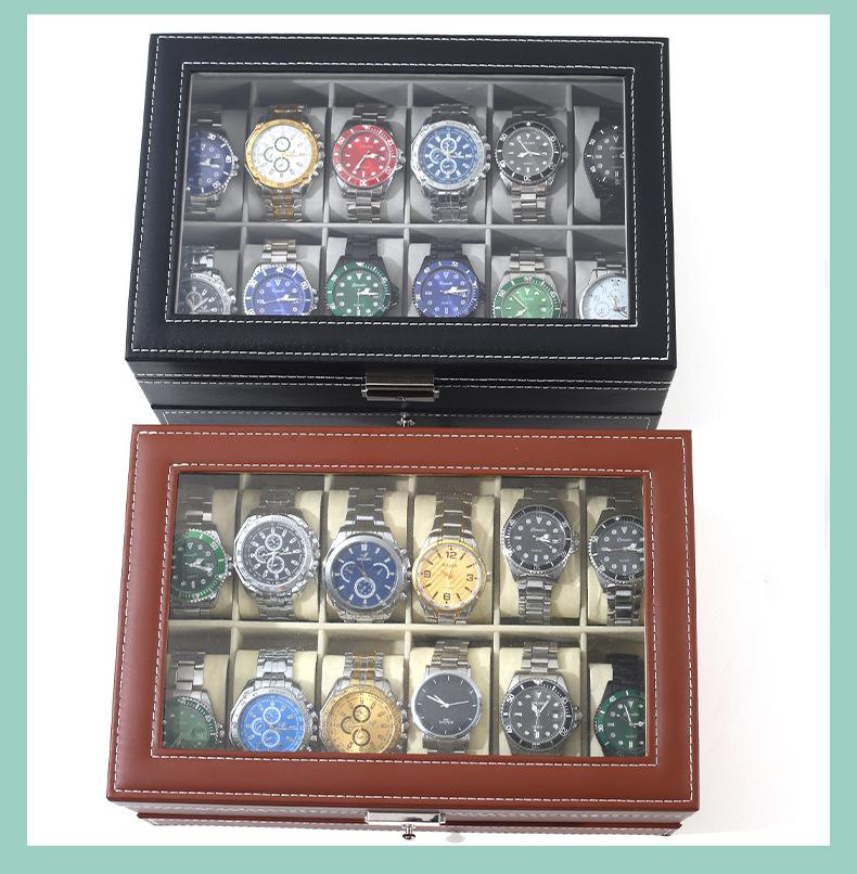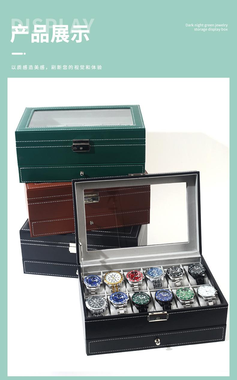 12-bit double-layer window watch jewelry box coffee color (inner rice)
