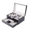 Caja de almacenamiento para relojes de cuero de fibra de carbono negro, tragaluz, multifuncional integrado, caja para relojes y gafas, joyero de alta gama