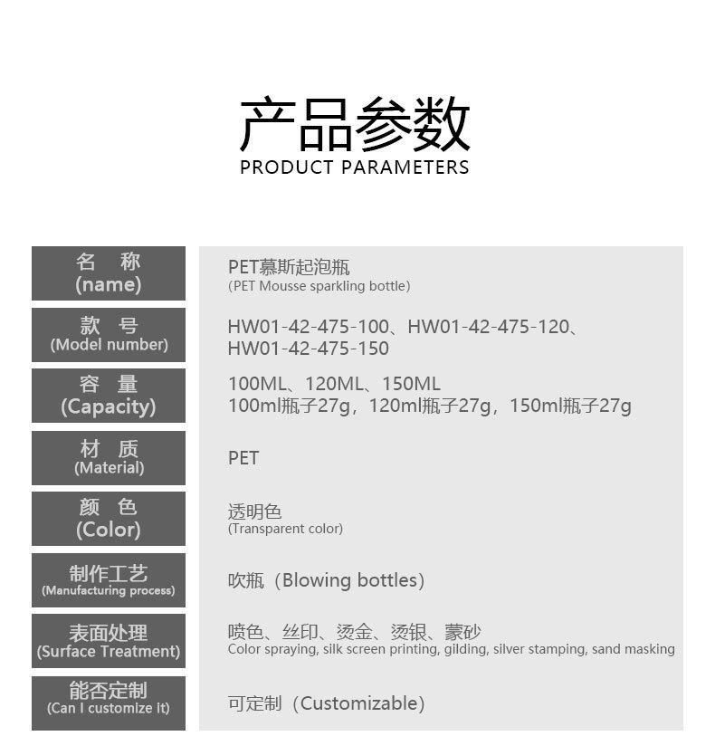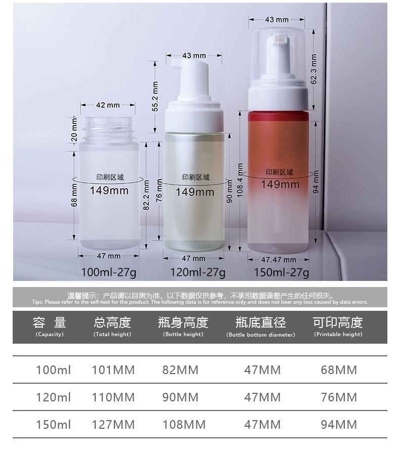 Botella de Espuma Limpiadora Facial Personalizada de 100/120/150ml Botella de Plástico PET con Presión para Espuma Botella de Mousse Limpiadora