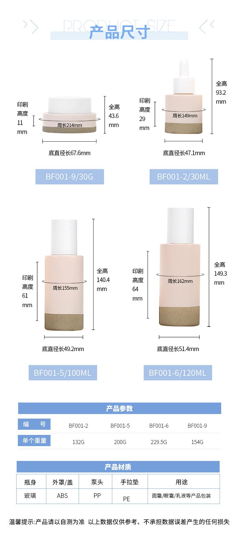 50g-a cream bottle, 30ml dropper bottle, 40ml lotion bottle, 50ml lotion bottle, 100ml lotion bottle, 120ml sc...