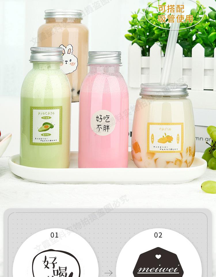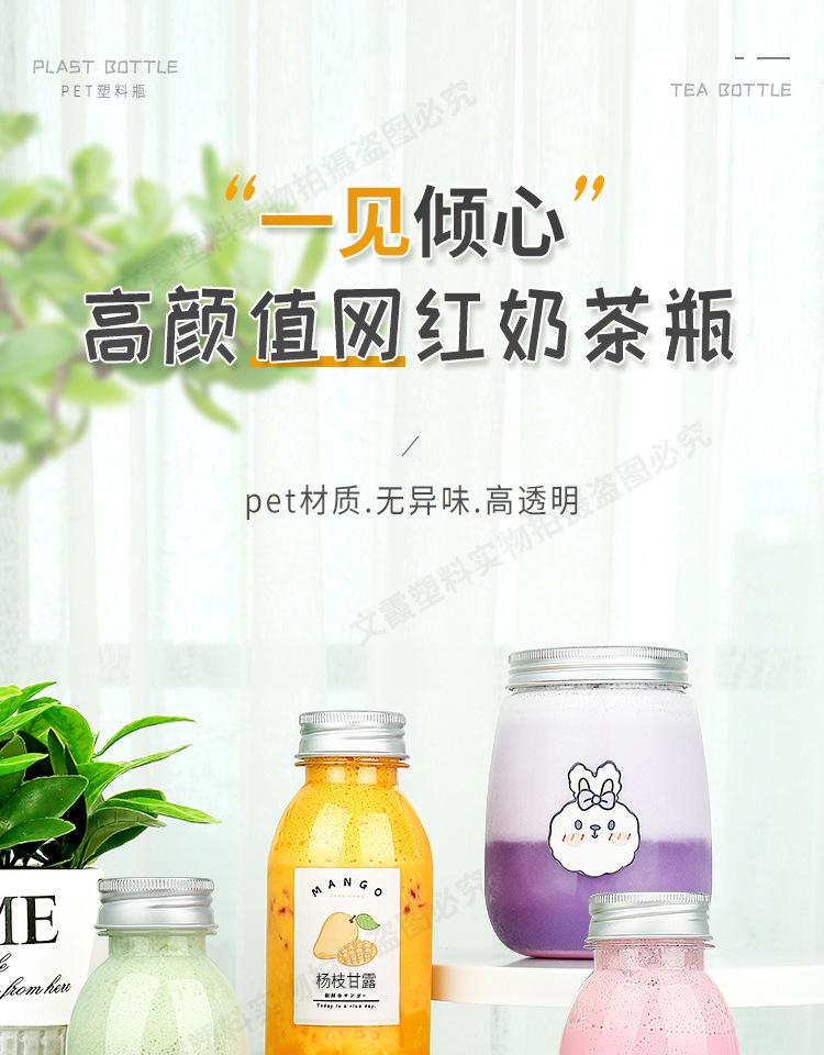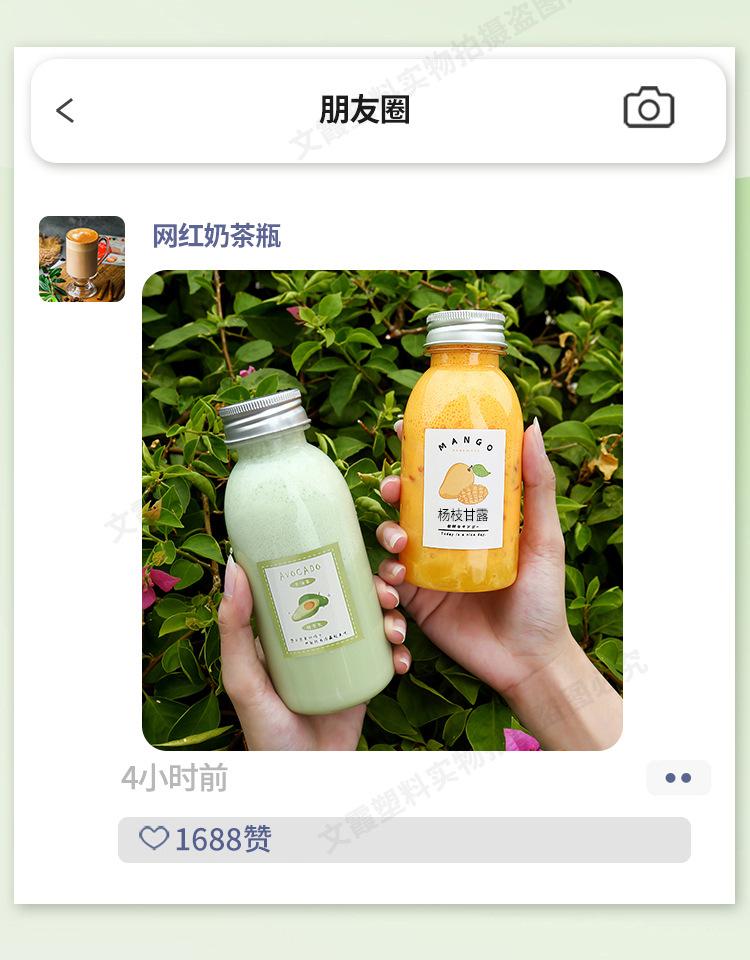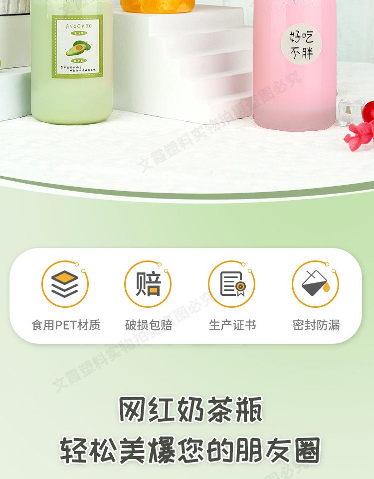 Botella de Té con Leche Desechable Plástico Transparente pet Celebridad de Internet Gordinho Jugo de Fruta Bebida Congelada Embalaje Pequeño Botella de Manano Rama de Álamo