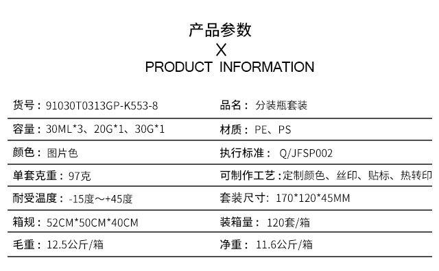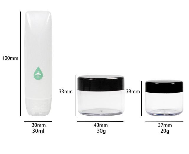 30ml*3+20g*1+30g*1; black lid; pe, 30ml*3+20g*1+30g*1; white lid; pe