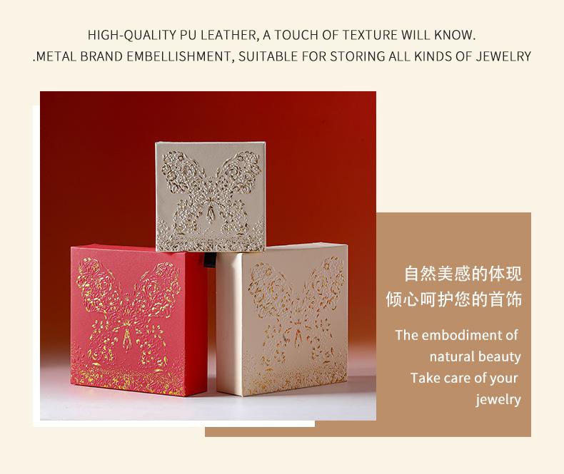 Caja de Almacenamiento de Joyas de Mariposa Textura en Relieve Caja para Aretes Anillos Estilo Chino Caja con Cajón para Collares Caja de Embalaje para Joyas