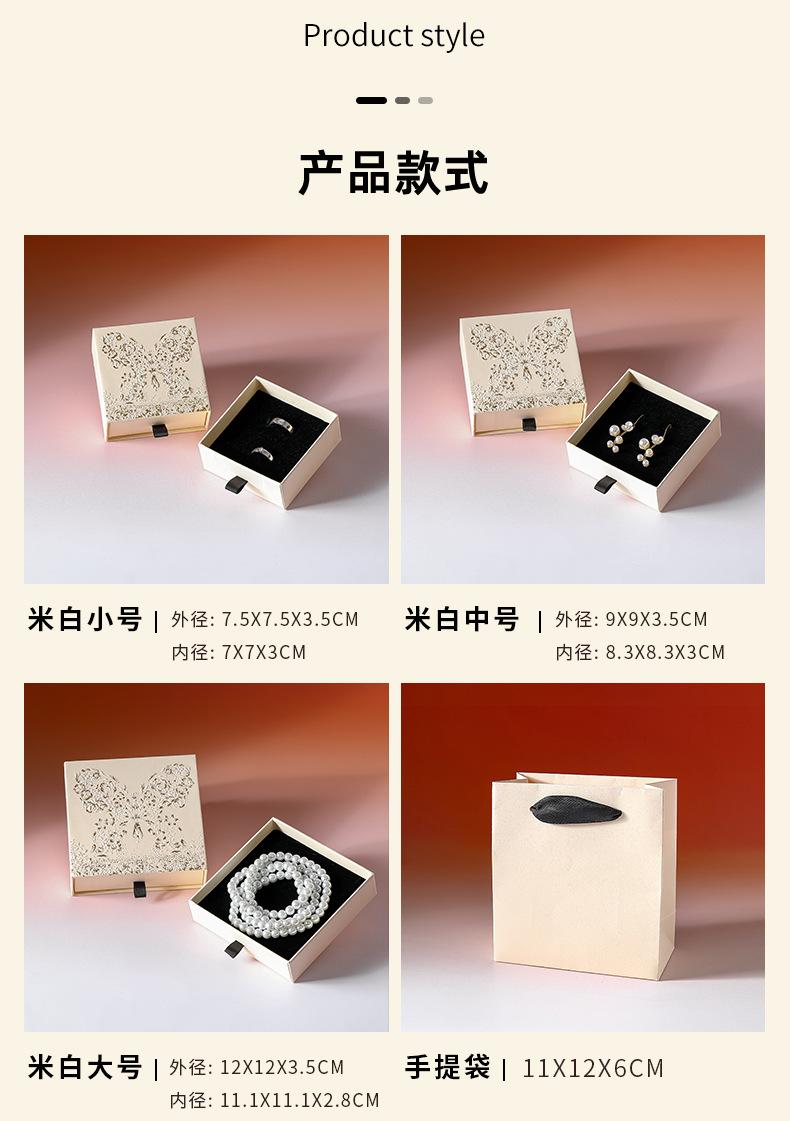 Off-white butterfly drawer box (embossed + hot stamping); 7.5*7.5*3.5cm with sponge, Off-white butterfly drawe...