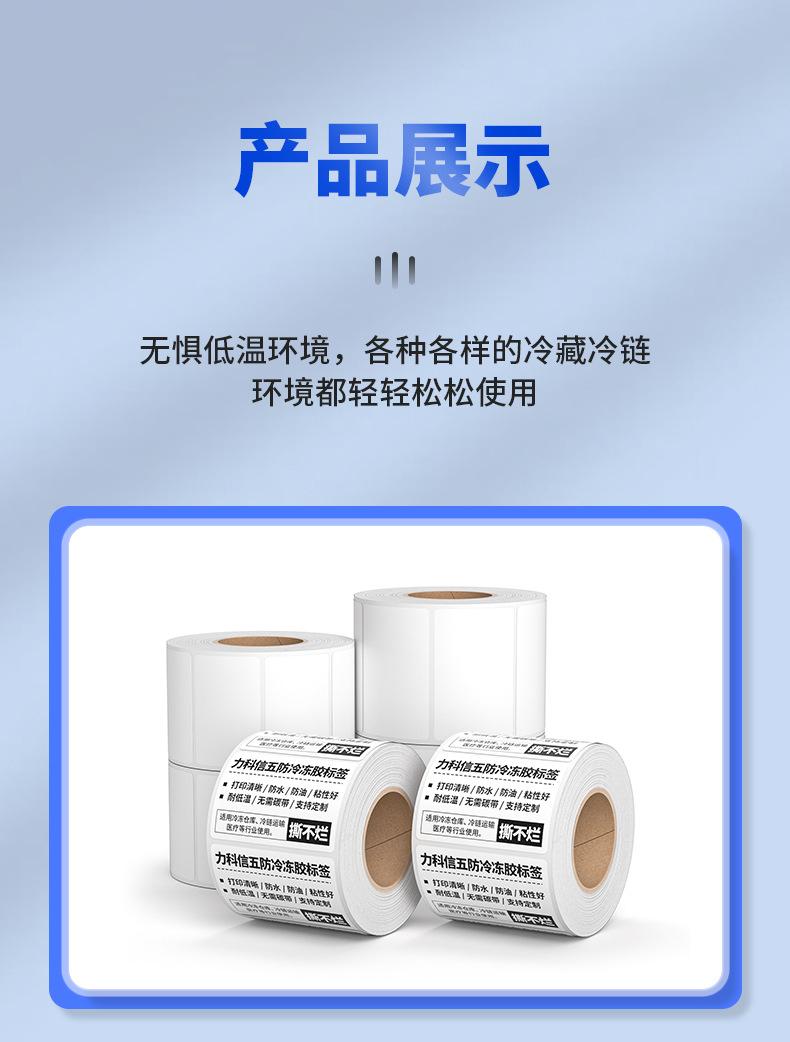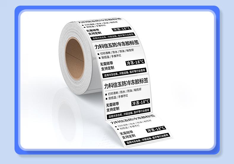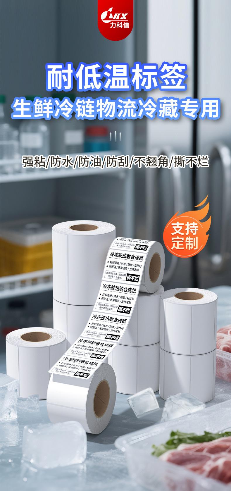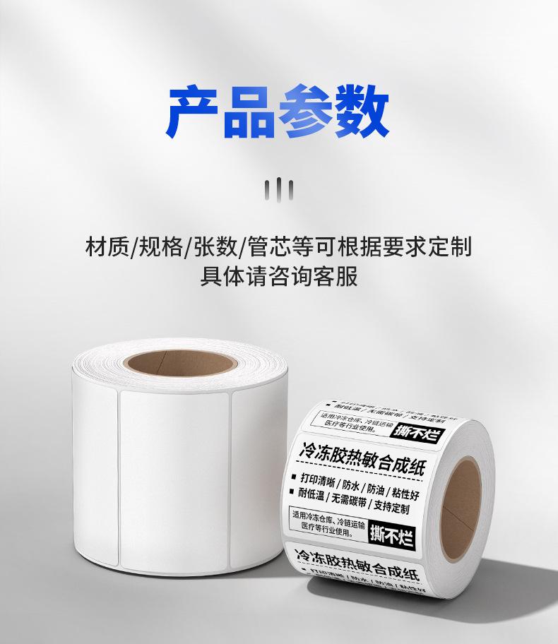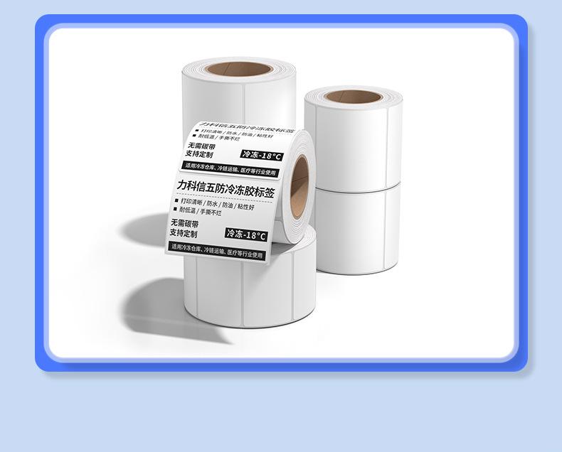 Papel Sintético Térmico Adhesivo Congelado Almacenamiento en Frío Resistente al Desgarro Impermeable Etiqueta de Código de Barras Fresco Baja Temperatura Papel de Impresión Térmica