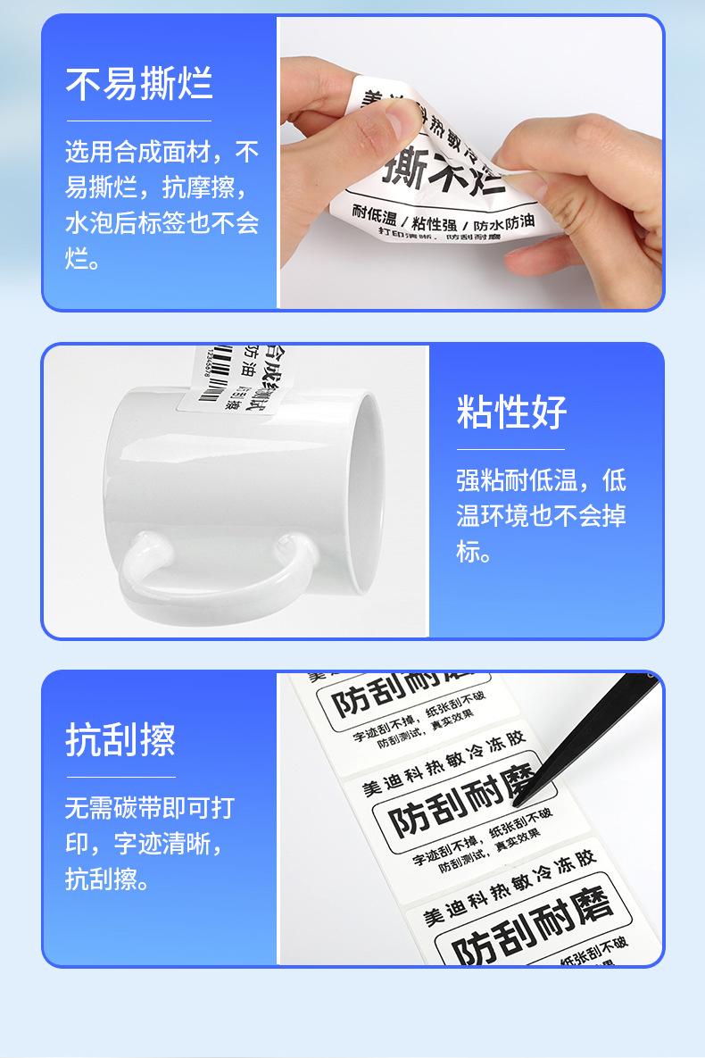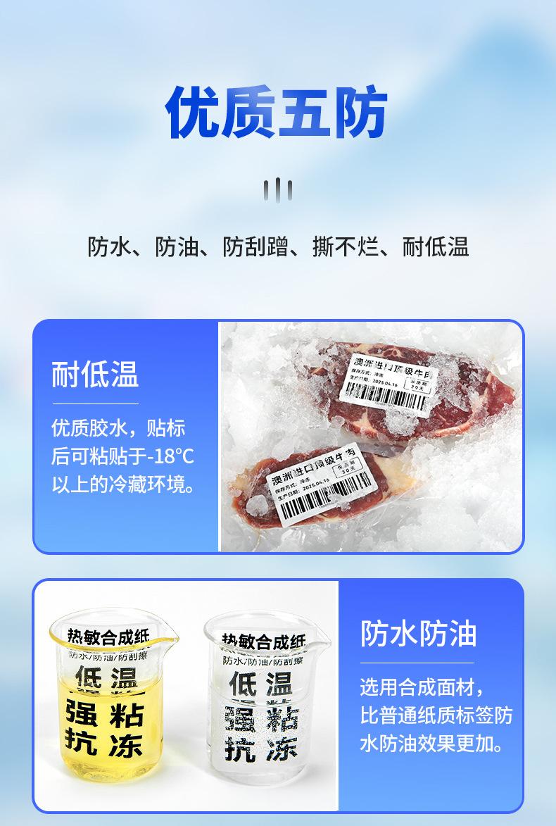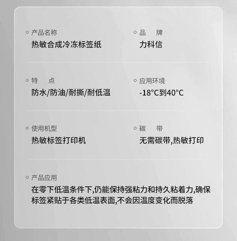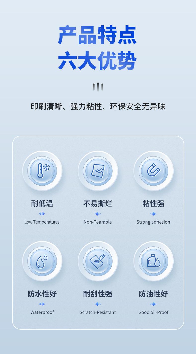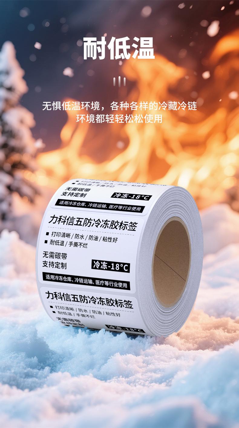 Papel Sintético Térmico Adhesivo Congelado Almacenamiento en Frío Resistente al Desgarro Impermeable Etiqueta de Código de Barras Fresco Baja Temperatura Papel de Impresión Térmica