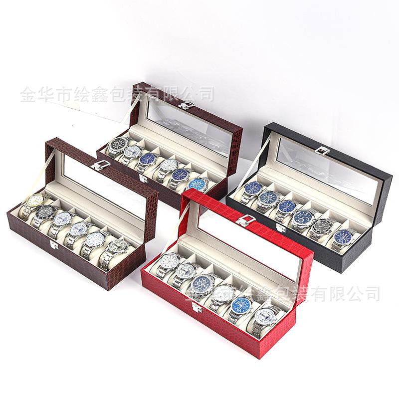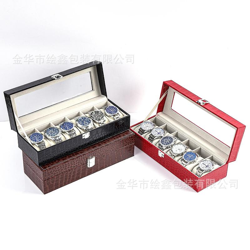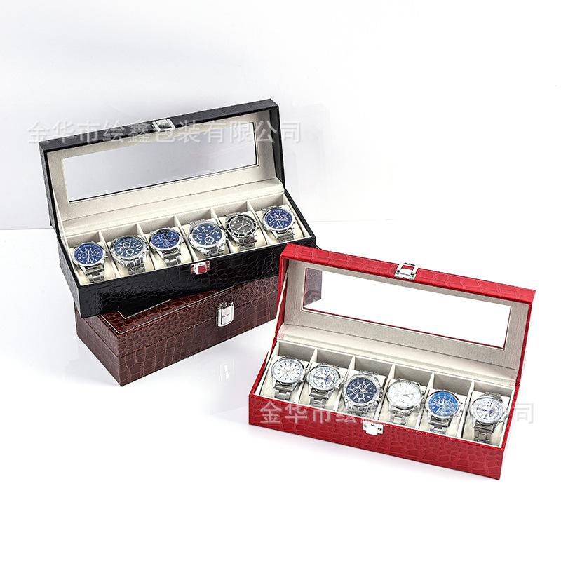 Al Por Mayor Directo Caja de Almacenamiento de Relojes de Cuero PU Multicolor con Patrón de Cocodrilo de 6 Ranuras Soporte de Exhibición de Relojes Caja de Embalaje de Relojes Joyería