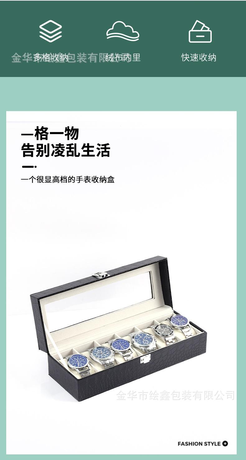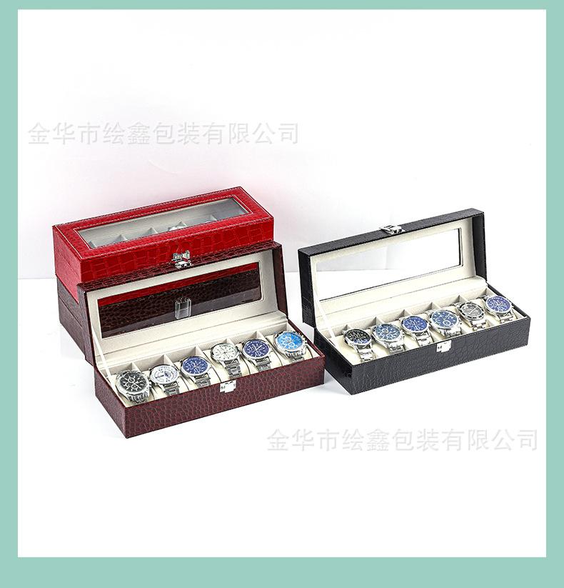 6slot crocodile pattern black watch storage box; 6slot crocodile pattern watch storage box