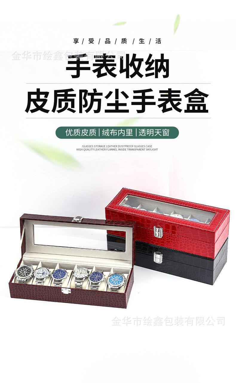6slot crocodile pattern black watch storage box; 6slot crocodile pattern watch storage box, 6slot crocodile pa...