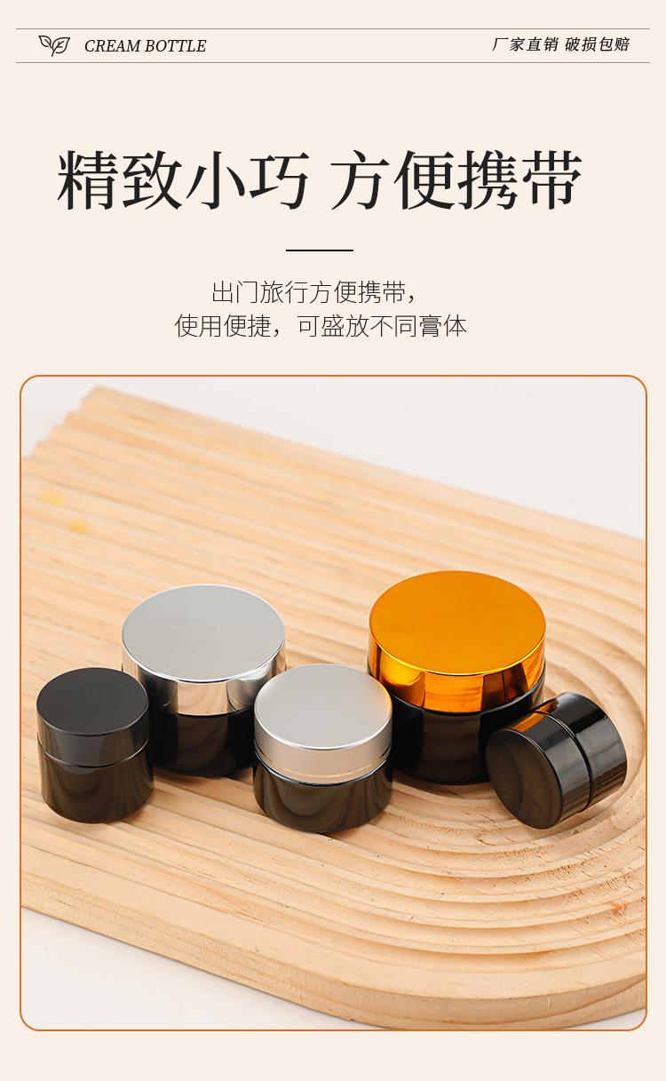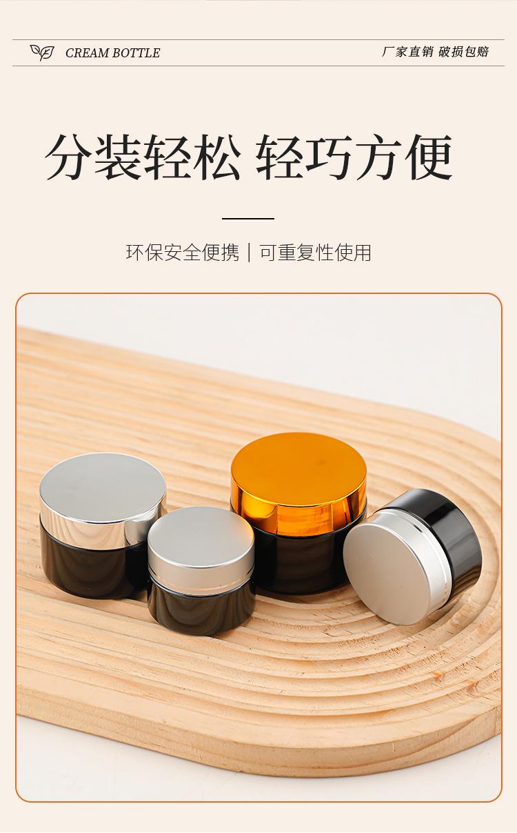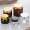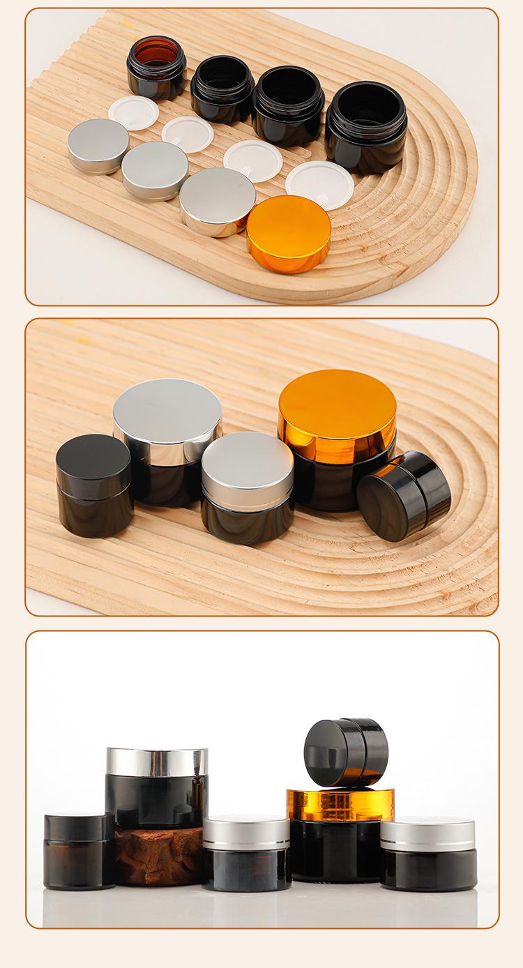 Brown 5g cream bottle; black cap; glass, Brown 5g cream bottle; bright gold lid; glass, Brown 5g cream bottle;...