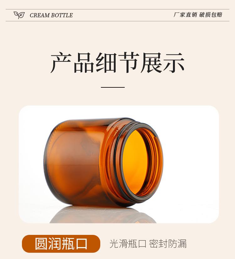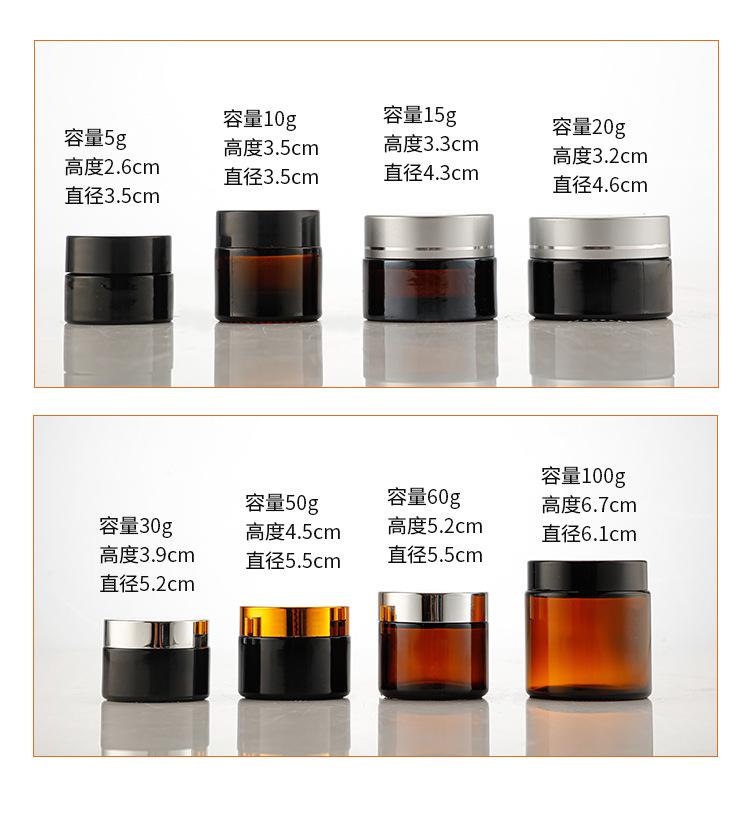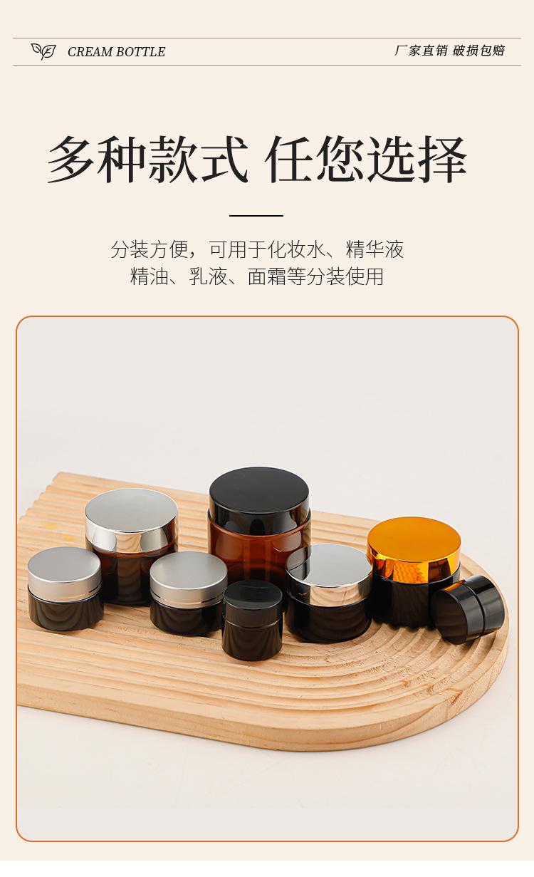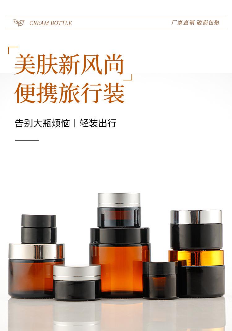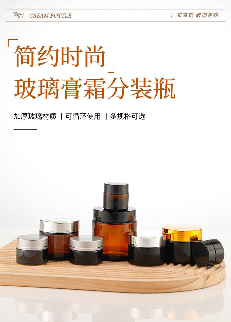 Botella de vidrio marrón para crema, 50 g, producto para el cuidado de la piel. Botella vacía para crema facial. Subbotella de 100 g. Botella cosmética espesa.