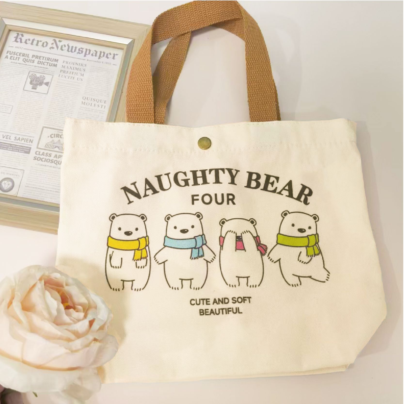 (bag packaging) little white bear; 21*27*8 with bottom and no sides; canvas
