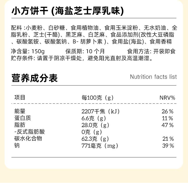 ¡Enamórate de las Galletitas Cuadradas! Latte de Coco Crudo, Queso Cremoso de Leche Espesa con Sal Marina, Snacks Crujientes de Oficina Empaquetados Individualmente