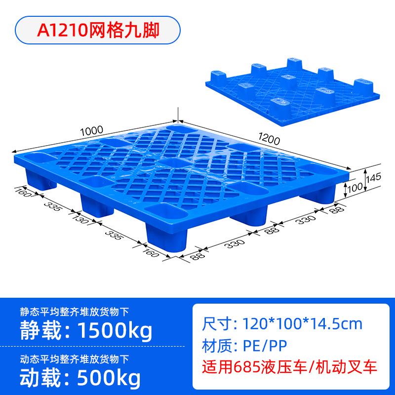 Palet de plástico de nueve pies de rejilla, almacén mayorista, tablero de piso a prueba de humedad, paleta logística, carretilla elevadora, paleta engrosada, paleta nueva