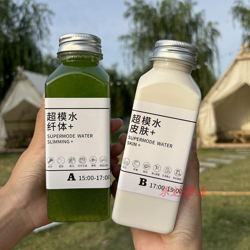 Botella de Jugo de Frutas y Verduras para Ayuno Ligero Supermodelo Botella Desechable Creativa para Bebidas Celebridad de Internet Plástico PET Vaso para Té con Leche Recién Exprimido