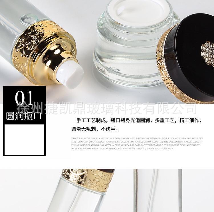 40ml lotion bottle; clear; glass, 100ml lotion bottle; clear; glass, 120ml lotion bottle; clear; glass, 30g cr...