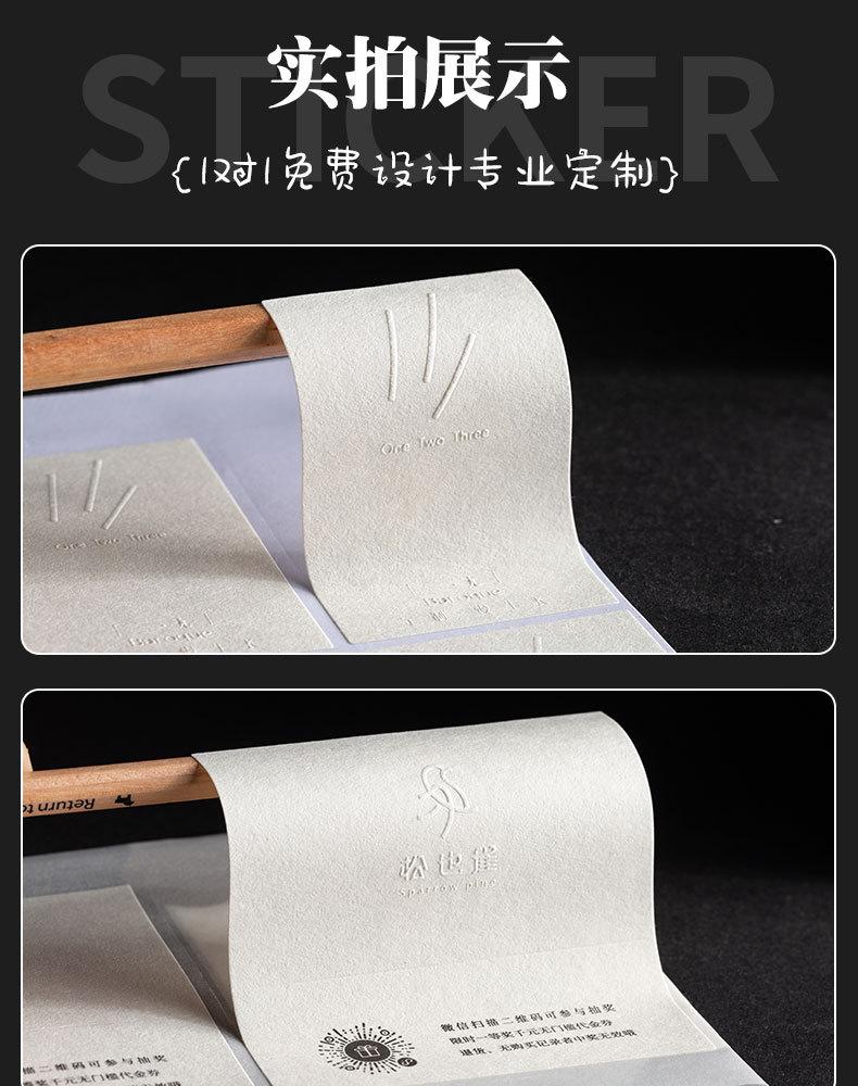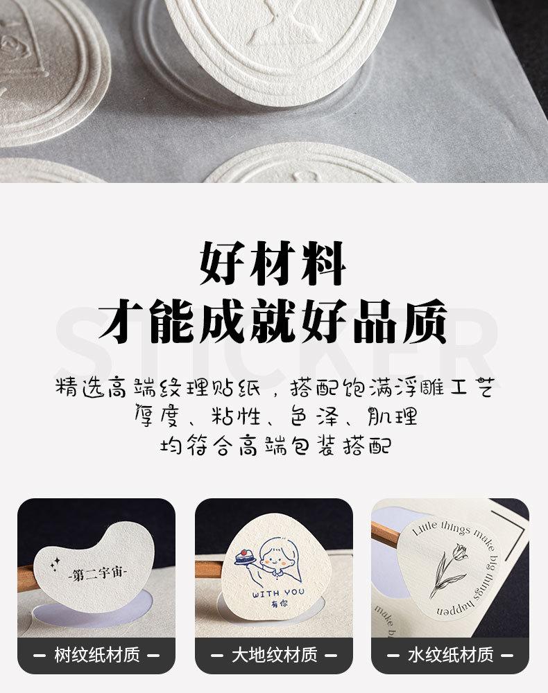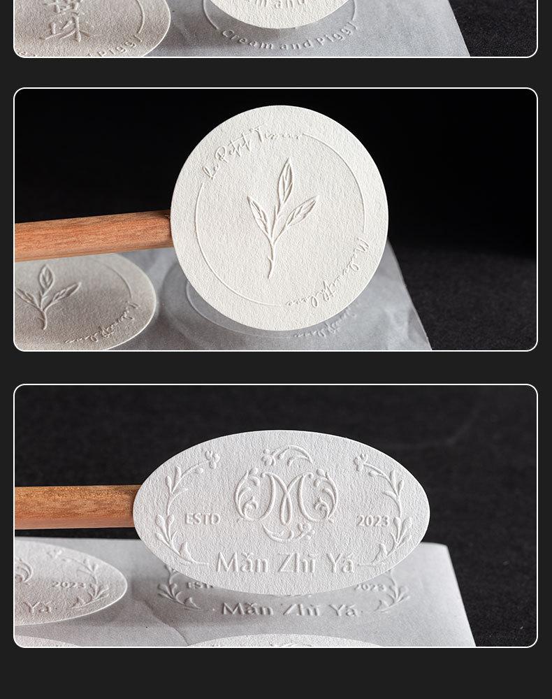 Papel especial autoadhesivo deboss personalizado rugoso incoloro repujado etiqueta con logo hot foil impresión de sticker de sellado hecho a medida
