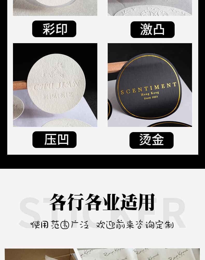 Compra Papel especial autoadhesivo deboss personalizado rugoso incoloro repujado etiqueta con logo hot foil impresión de sticker de sellado hecho a medida al por mayor en Joom.pro