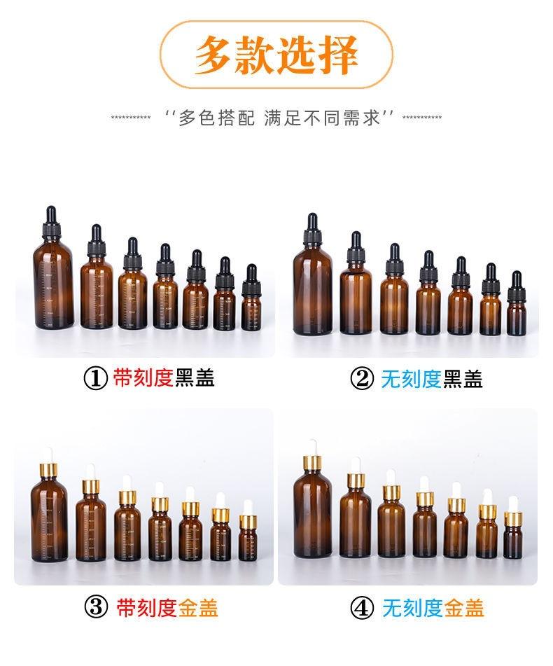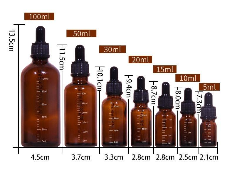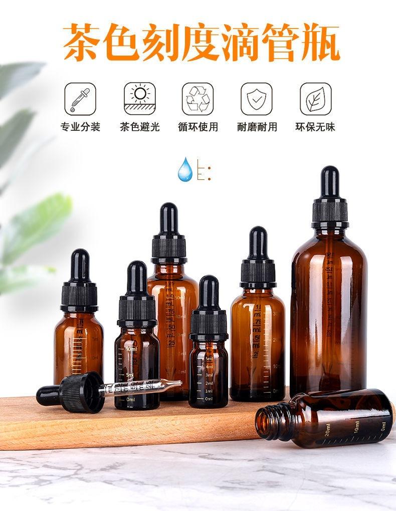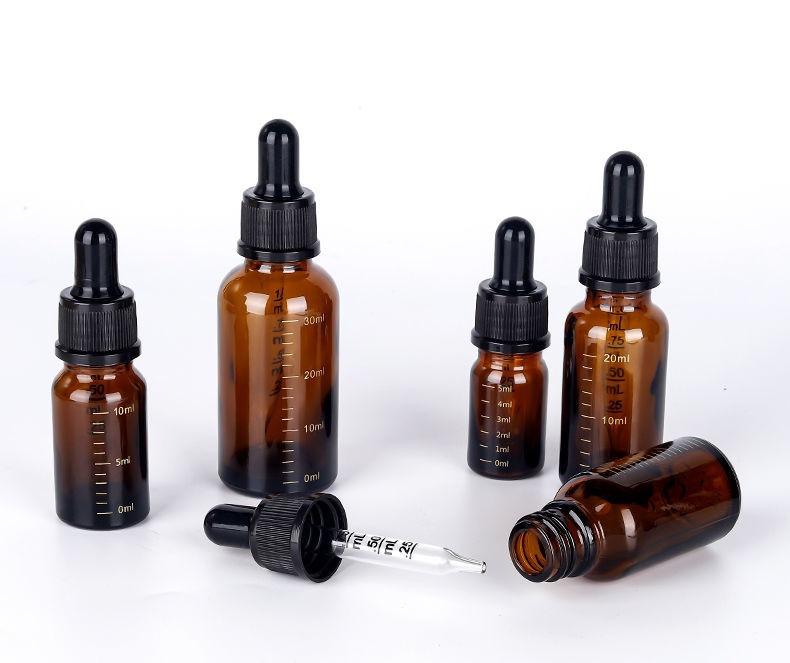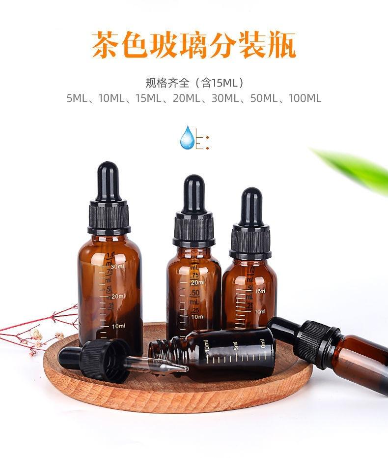 Botella de vidrio con gotero en stock 5ml-100ml botella vacía de pequeña capacidad sub-botella Botella marrón para aceite esencial