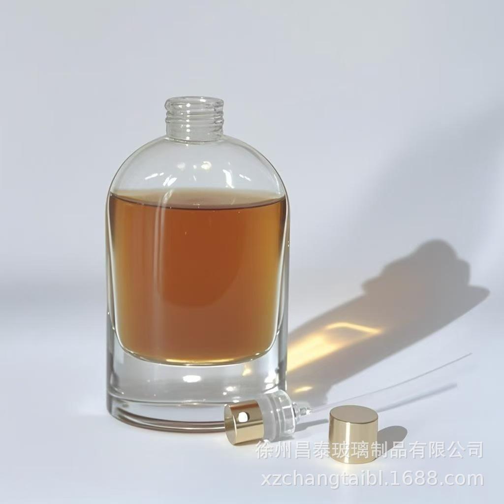 Botella de Loción para Perfume y Productos para el Cuidado de la Piel de Vidrio Redonda Plana al Por Mayor Botella de Vidrio Transparente Sellada Botella de Spray de Niebla Fina
