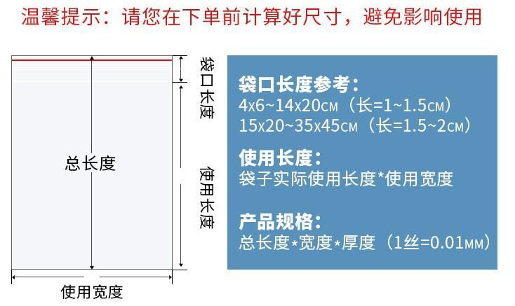 Por ejemplo, 10 seda significa que el espesor de la doble capa de la bolsa es de 0,1 mm.
