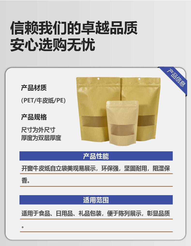 Bolsa de Papel Kraft con Ventana Esmerilada Autoportante con Cierre Ziplock Bolsa Sellada Bolsa de Papel Kraft para Té Bolsa para Empaque de Alimentos