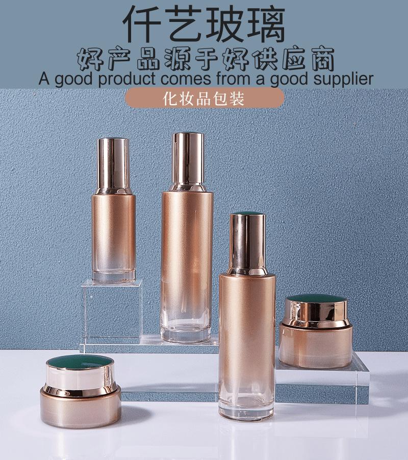 Nuevo Frasco de Crema de 50g, Frasco de Vidrio para Producto de Cuidado de la Piel, Set de Loción, Frasco para Esencia, Frasco para Esencia Dorado Degradado de 40ml