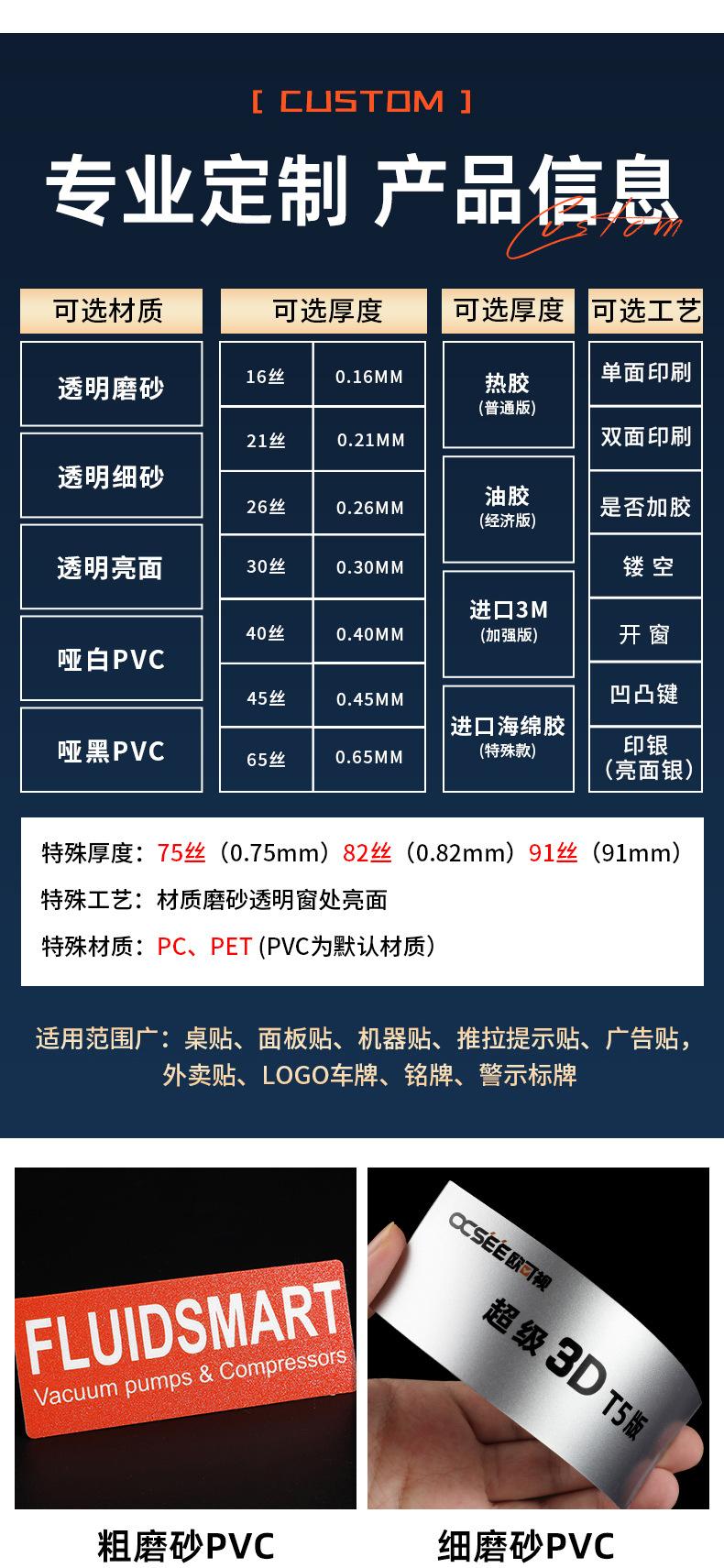 Adhesivo de PVC Autoadhesivo Hoja de Plástico Personalizada Impermeable Esmerilado Etiqueta Publicitaria Impresión de Logotipo Personalizado Adhesivo de Mesa Adhesivo para Panel