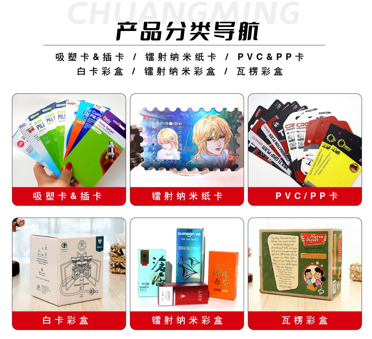 | 【Tarjeta Blíster】La tarjeta de papel es un nuevo tipo de tarjeta de papel que es respetuosa con el medio ambiente y está reemplazando gradualmente a las tarjetas de material PVC. Se utiliza principalmente en las industrias de bienes de consumo de rápido movimiento y entretenimiento cultural, como juegos, audiovisual, etc. Sus ventajas de bajo costo y producción sencilla son ampliamente aceptadas y utilizadas por todos los sectores de la sociedad. Las tarjetas de papel pueden utilizar papel estucado importado, con varios gramajes como 250 gramos, 300 gramos, 350 gramos, 400 gramos, 450 gramos, etc. Tiene las características de bajo costo, fuerte confidencialidad, protección ambiental y ahorro de energía. Las tarjetas de papel utilizan papel estucado a doble cara, con un brillo de impresión de hasta el 95%. El anverso y el reverso del cuerpo de la tarjeta están protegidos con barniz o laminación. 【Tarjeta Blíster】El papel plástico es un tipo de papel procesado. Parece un producto de plástico en capas. Es resistente y delgado, y tiene propiedades superiores como ser impermeable, resistente a los ácidos y a los álcalis. Se utiliza como sustituto para fabricar las carcasas exteriores de juguetes, muebles, radios y televisores, etc. El papel base es un papel fino blanco limpio con buena absorción de agua, hecho de pulpa de trapo mediante pulpa de forma libre. Durante el procesamiento, el papel base pasa por una solución de resina fenólica, se corta en secciones pequeñas, se superpone y se cubre con una capa de papel de color y papel transparente, luego se seca bajo presión de vapor. |