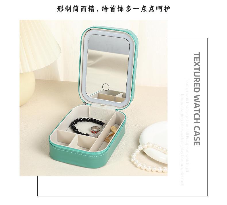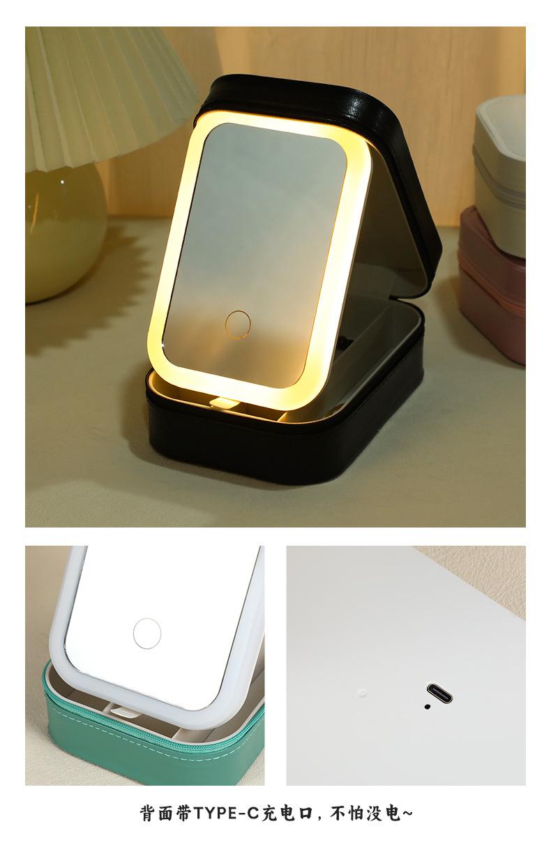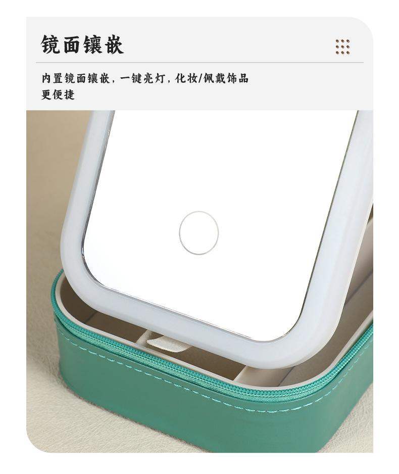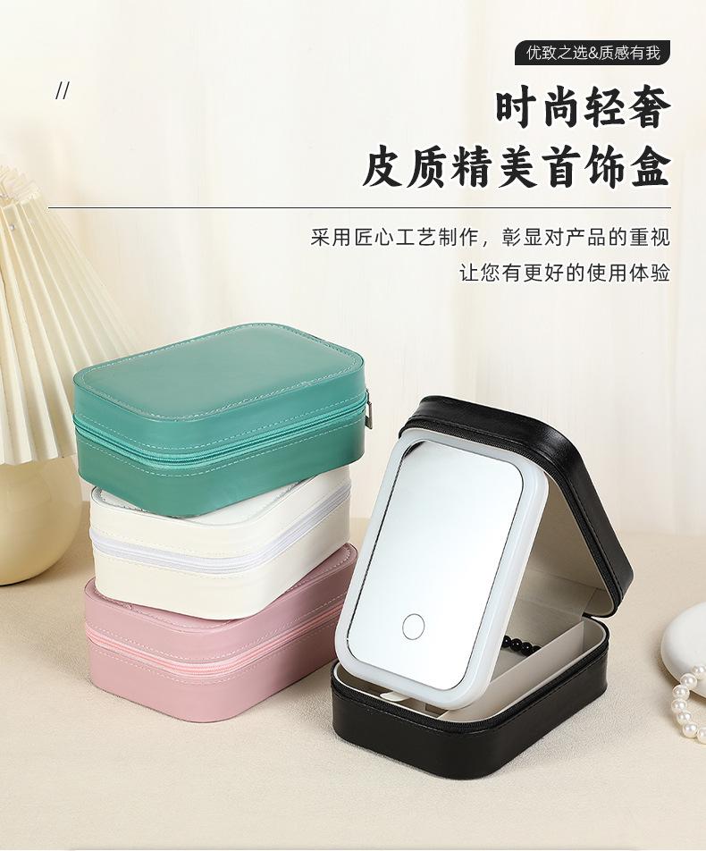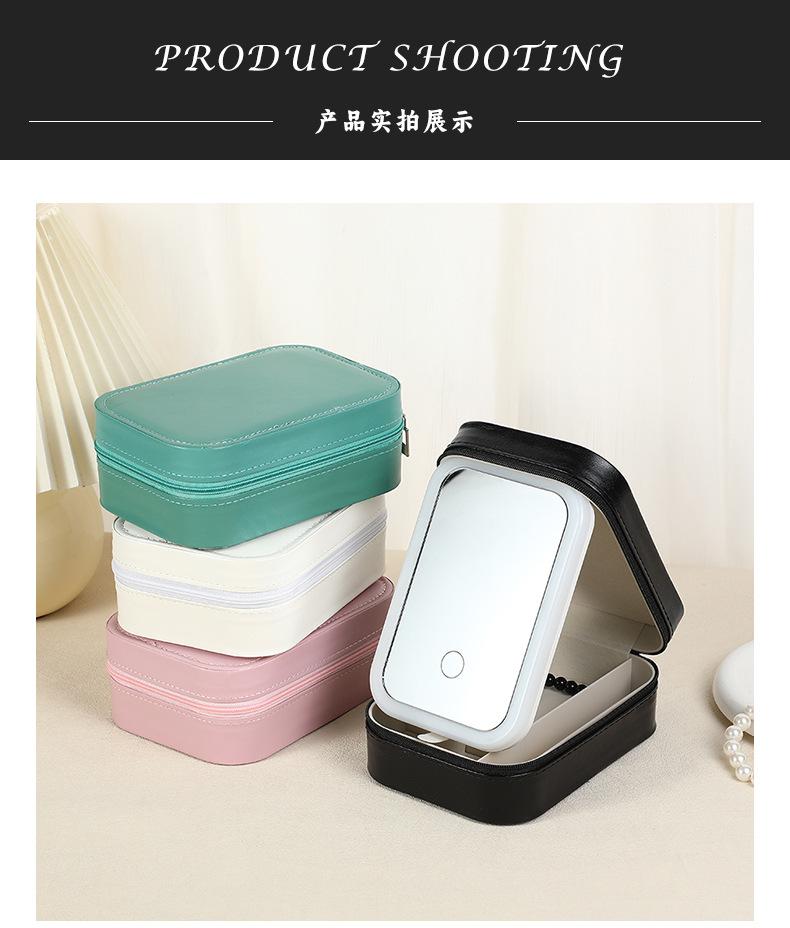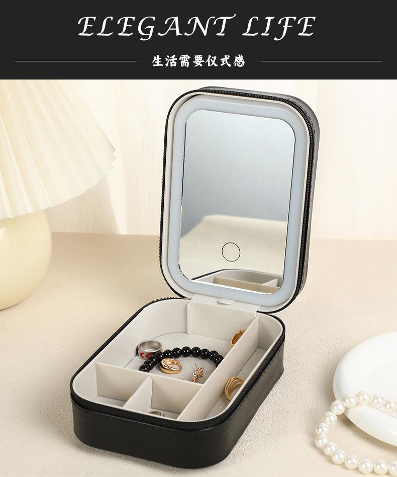 Espejo de maquillaje LED transfronterizo joyero multifuncional portátil caja de almacenamiento de joyas ins simple collar aretes joyero