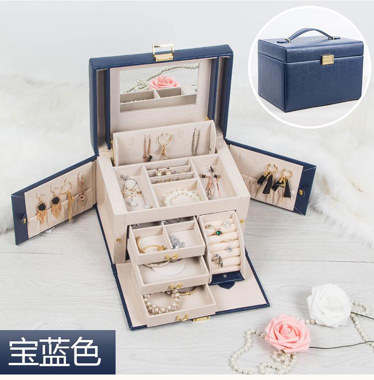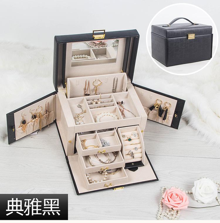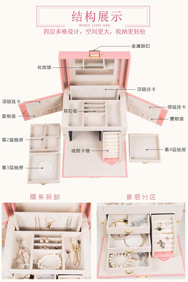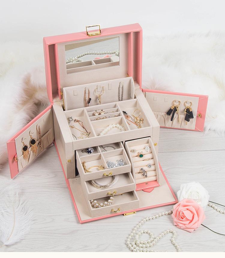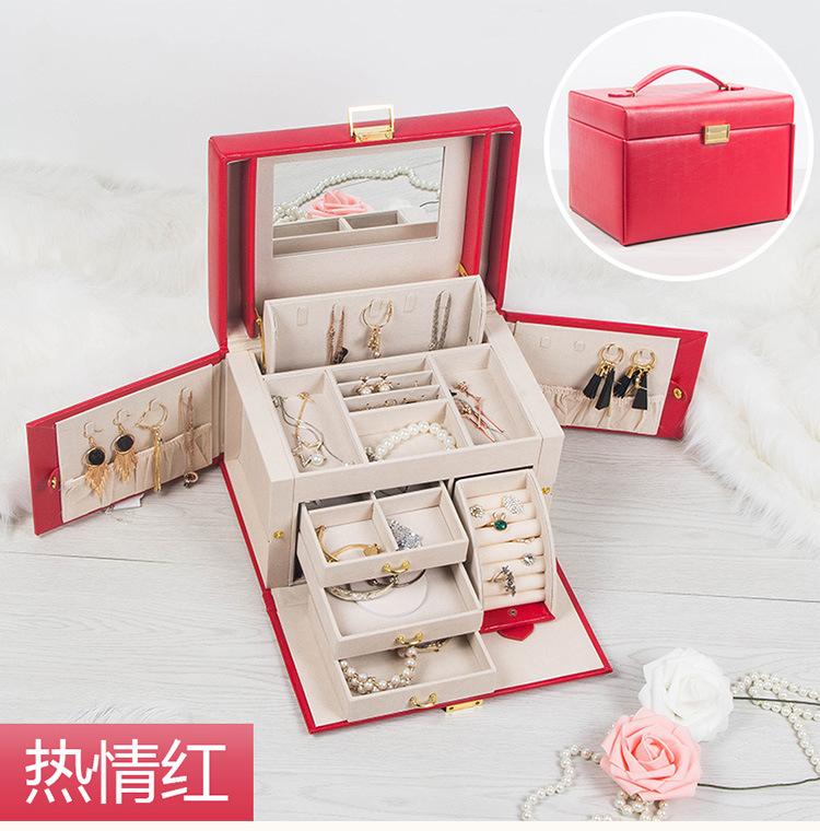 Caja de Joyería de Princesa Europea Simple Aretes Collar Caja de Almacenamiento de Joyas con Cerradura Caja de Almacenamiento de Gran Capacidad Opcional Multicolor