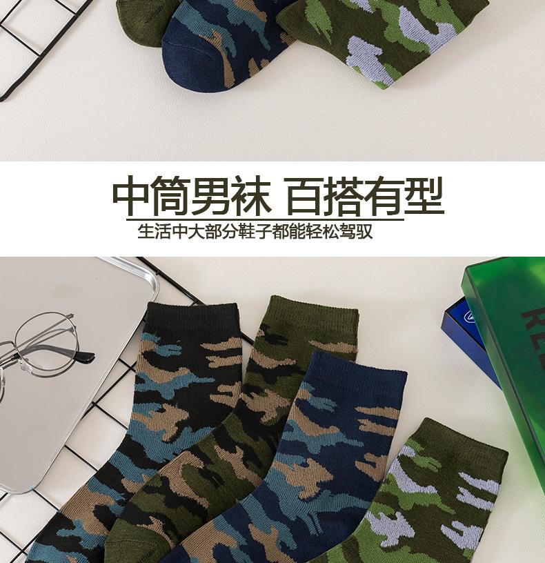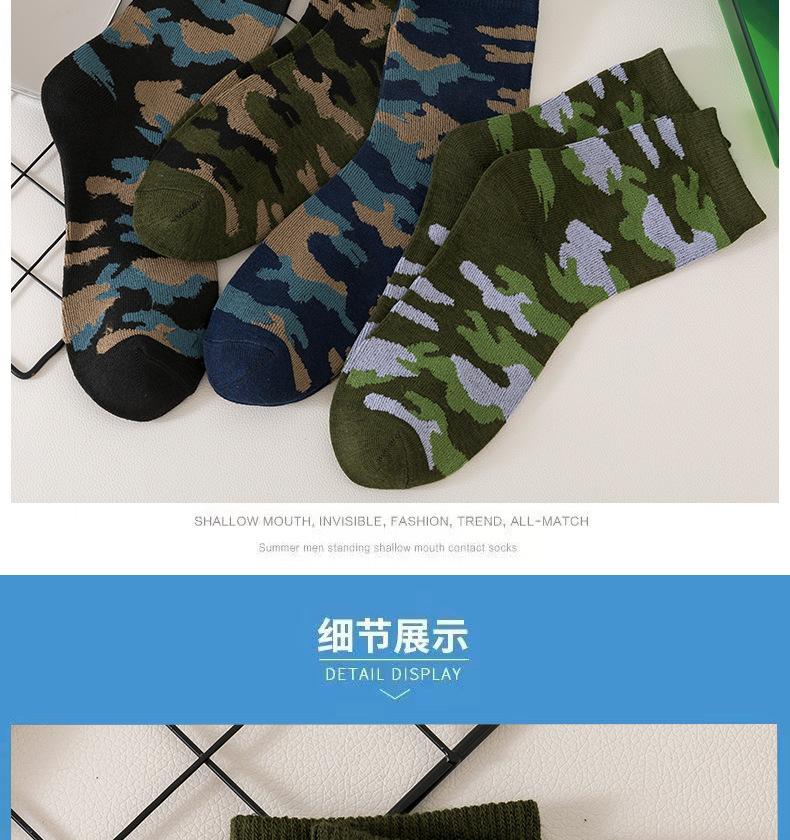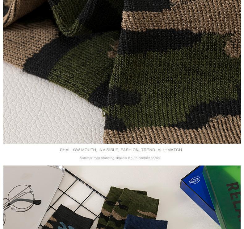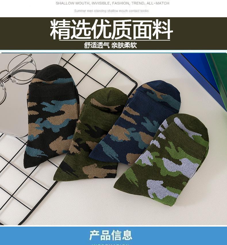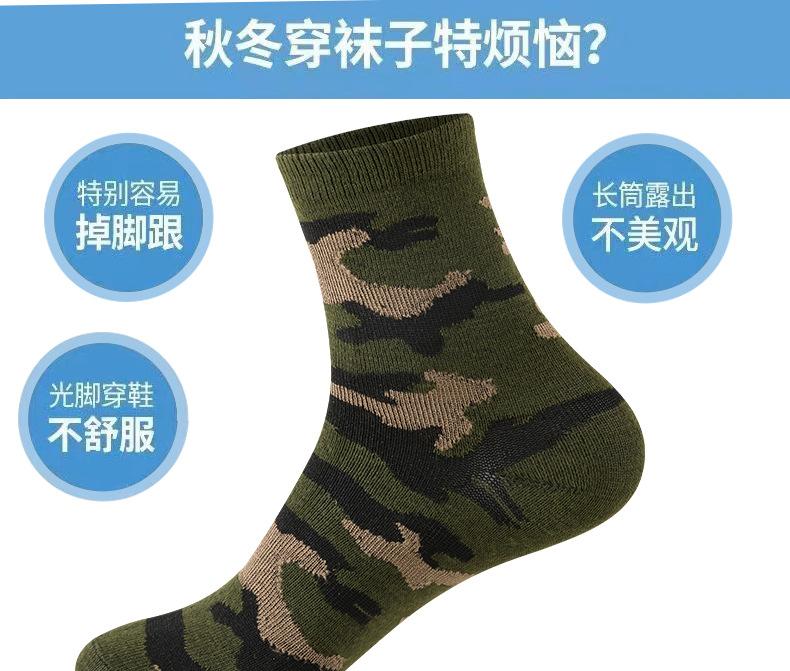 Calcetines en suministro directo calcetines cortos de hombre calcetines de tubo puesto primavera y otoño venta al por mayor fábrica de calcetines trabajo protección laboral fábrica de comercio exterior camuflaje verde