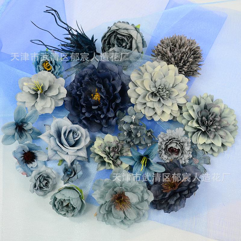 European small rose flower blue, European small rose flowers haze blue, Grass core peony flowers light blue, G...