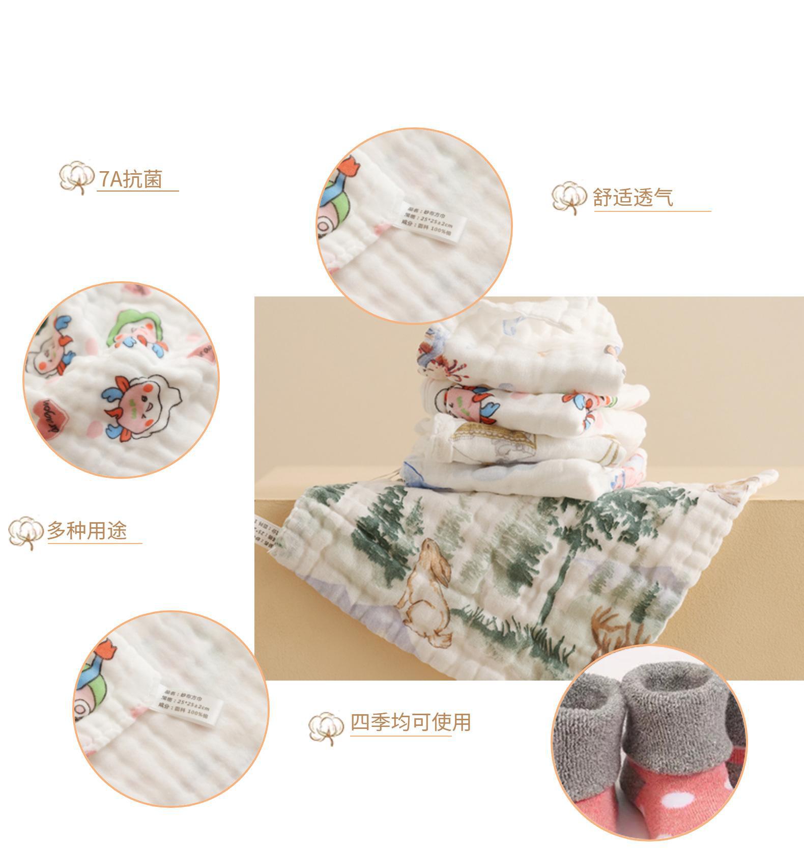 Toalla de saliva para recién nacido antibacteriana 7A algodón de seis capas gasa de alta densidad toalla cuadrada suave respetuosa con la piel toalla facial para bebé toalla cuadrada