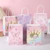 Bolsa de Papel Kraft de Dibujos Animados Bolsa Tote Estampada Apertura Escolar Mano Bolsa de Regalo de Papel Kraft Bolsa de Compras Bolsa para Guardar Regalos