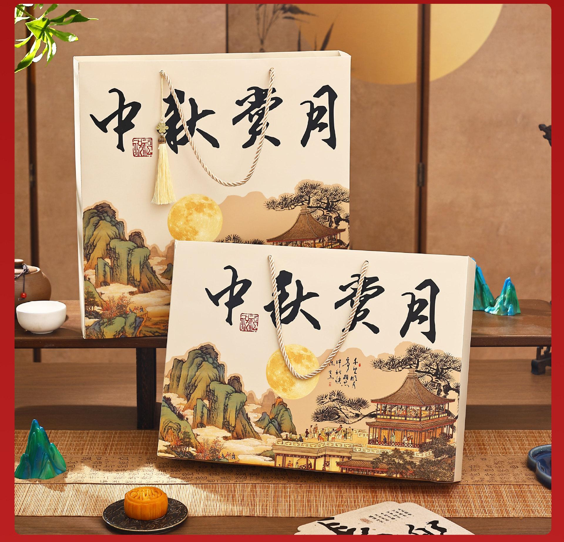 Caja de Regalo de Pastel de Luna de Mediados de Otoño 2025 68 Piezas Embalaje de Regalo Caja Vacía Portátil Logo Nuevo Estilo Pastel de Luna Líquido Lote Puntual